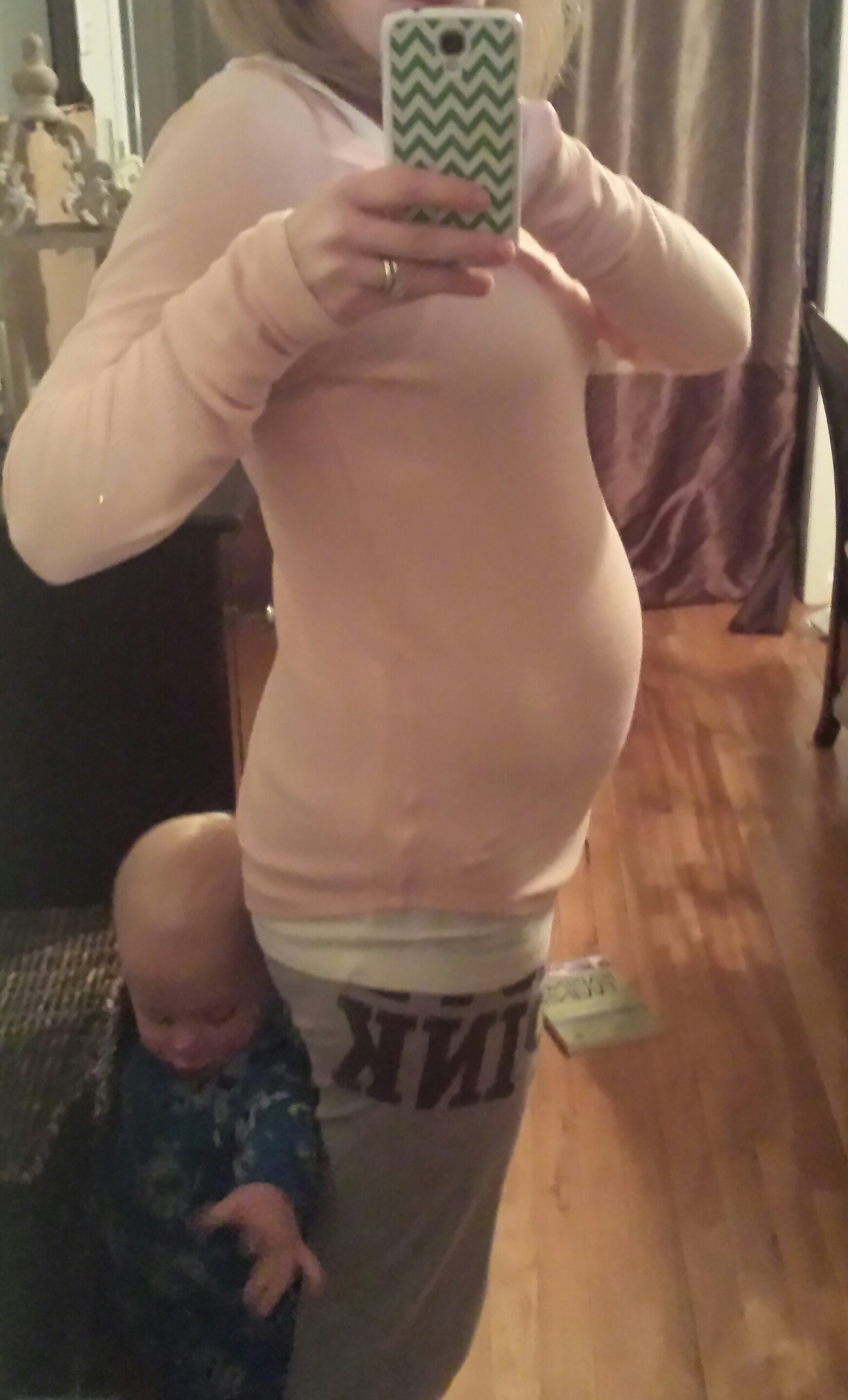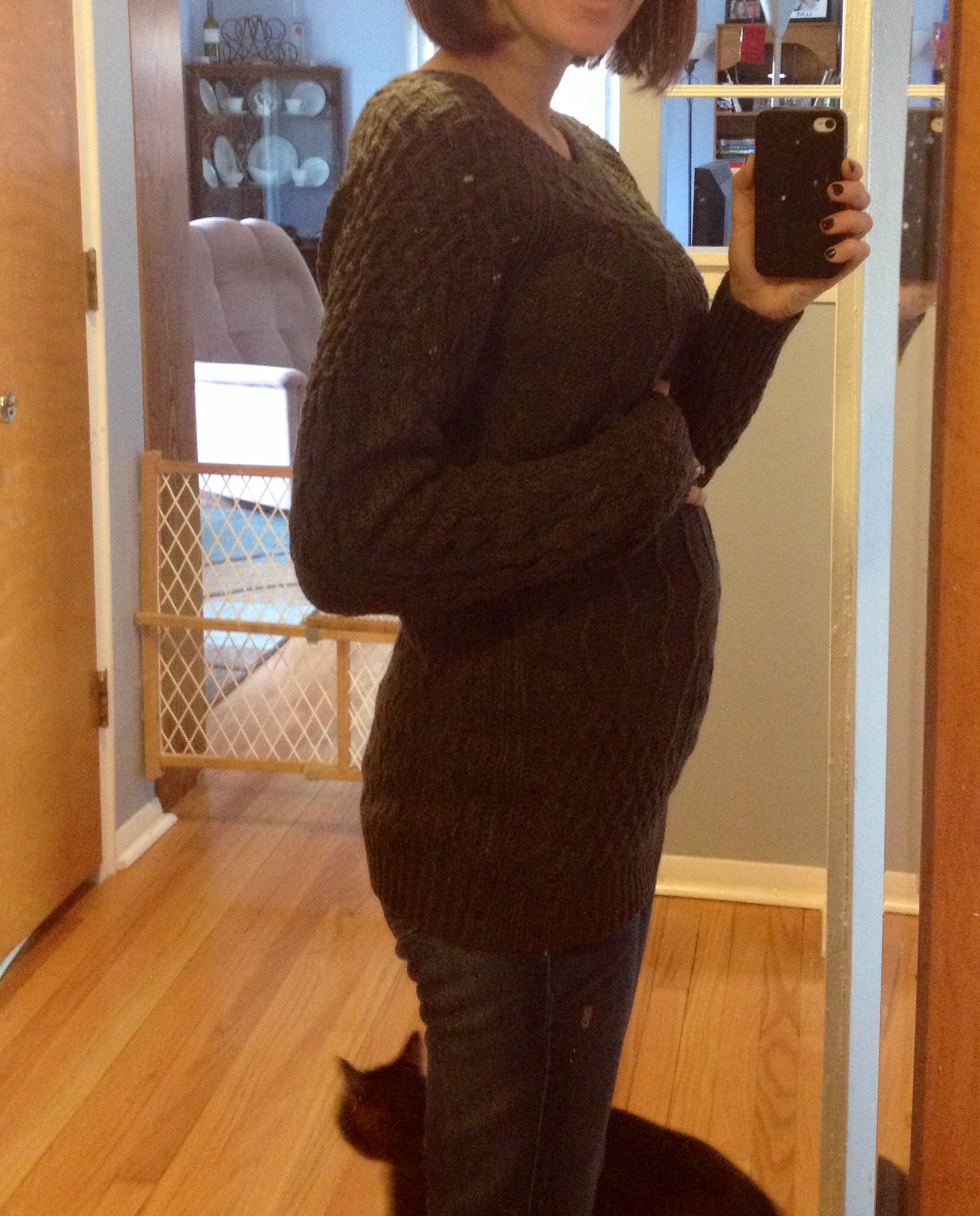 My baggy sweater and fat jeans are doing good work, but this blump is definitely growing! Wish I could take some GasX and see how big a bump I actually have.