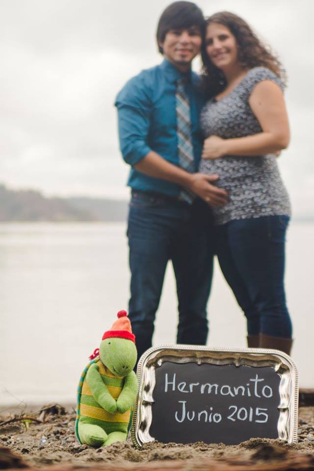 QOTW: Do you plan on getting professional maternity pictures done? If so, do you think you'll incorporate your angel baby in them? My brother is a professional nature photographer. He was visiting when I was around 34 weeks with Zedekiah, so he took my maternity pictures. I don't know if I'll do them again this time, it would be nice, but only if my brother or one of my friends who do photography can take them for free-ish. One of my good friends just took some announcement type photos for us on Monday. They turned out really cute and we tried to include our son in them as well as his little brother. I'll attempt to attach a couple that show how we included Zedekiah. (I just found one on this computer to attach. Hermanito is "Little Brother" in Spanish. We also took some in English. The turtle was given to Zedekiah in the hospital by my parents. It has magnets in the hands and feet, so we had it connected to the side of his bassinette, watching over him. It was also the perfect size to hug/hold in the months afterwards.)