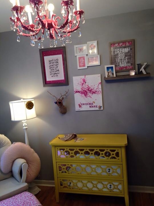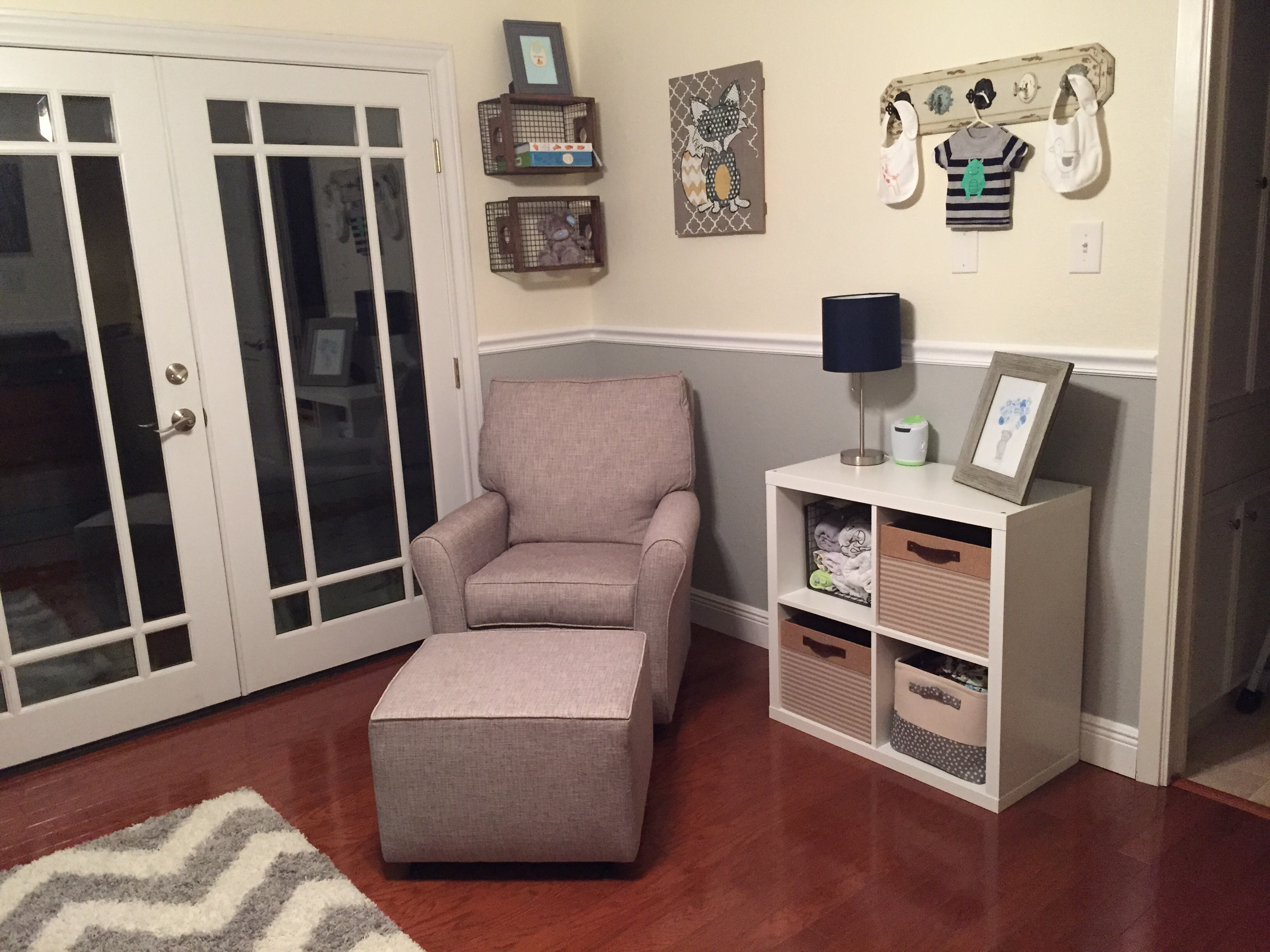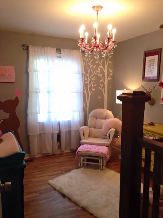 Mine is still a work in progress. I was on spring break last week and thought it would be done by the end. The walls had a very ugly swirly desighn from the previous owner. Hired a painter and he did not tell me painting over the walls would be an issue. So he did it and when I went to see it could still see the design through two layers of paint. He said when it dries it would be fine but that was not the case. So he is out and we got a new painter. The painter came yesterday and decided to shake the paint can to see how much was left (about 3 minutes after I asked him to be careful bc I had just gotten new carpet in that room and the other one he needed to paint. Btw I planned for the carpet to be installed after the painting was done but since the problem with the painter I had no choice). So as he shook the cn part of the lid popped up ( bad painter never closed it well) and sent paint all over the new carpet, my walls, hardwood floors and me. Sorry for the long vent. It's a good thing the baby does not need the roo right away!