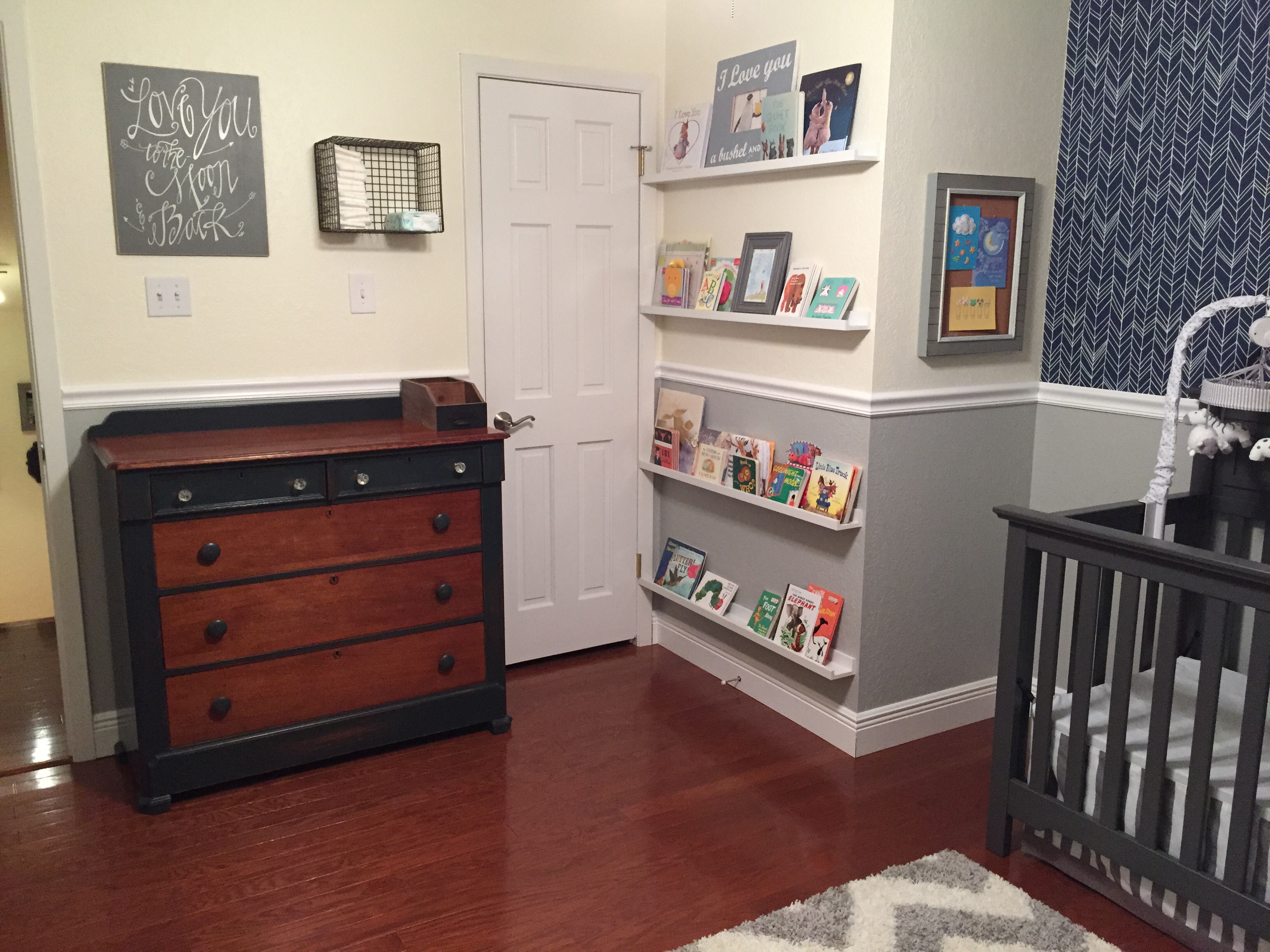 We went with a grey, navy and white theme for our nursery. Was so fun to shop for and decorate..found a lot of good deals shopping at Home Goods, Michaels, etc!