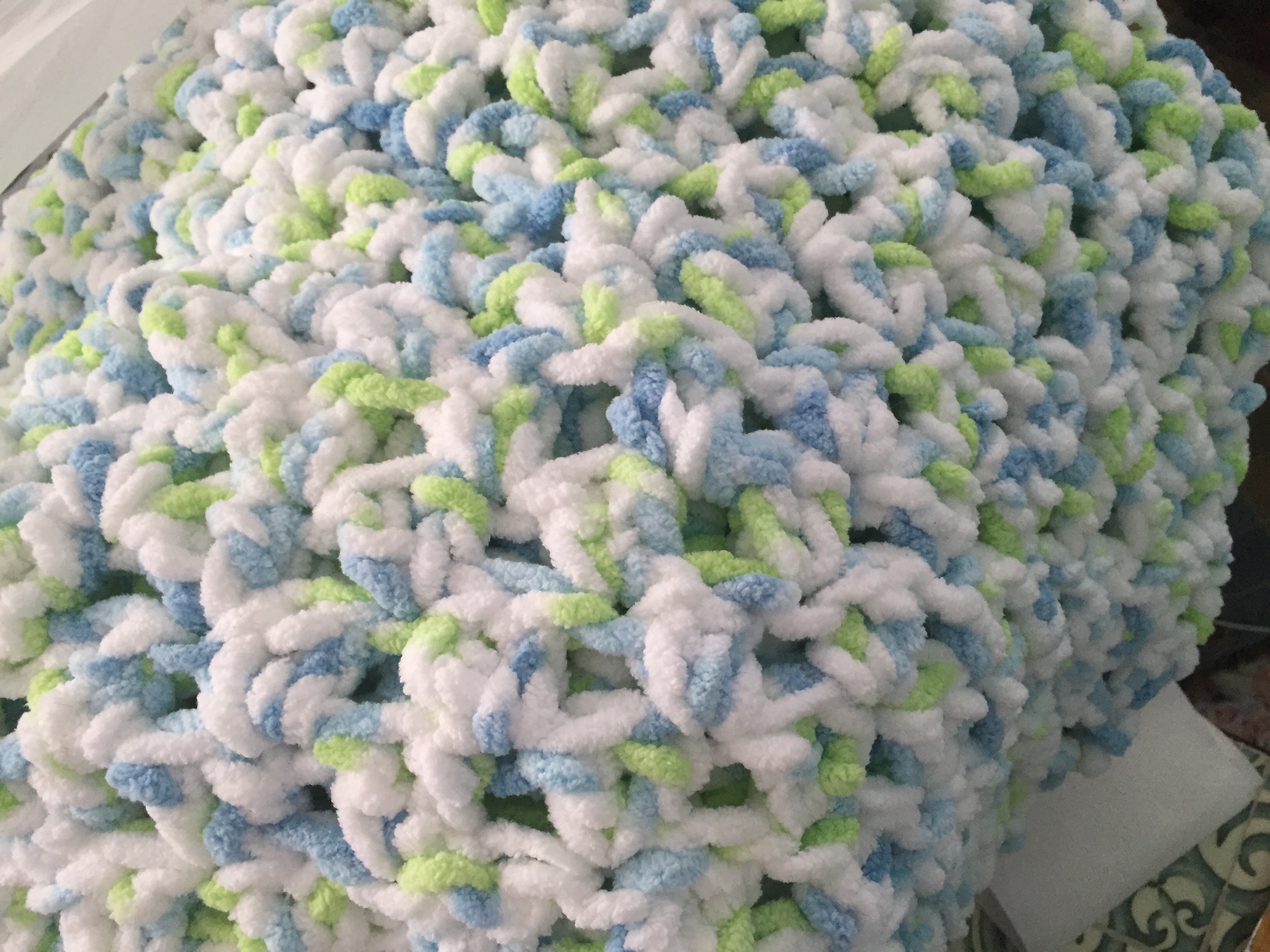 I made mine a little wider and used 2 big balls of yarn, and 1 regular ball.