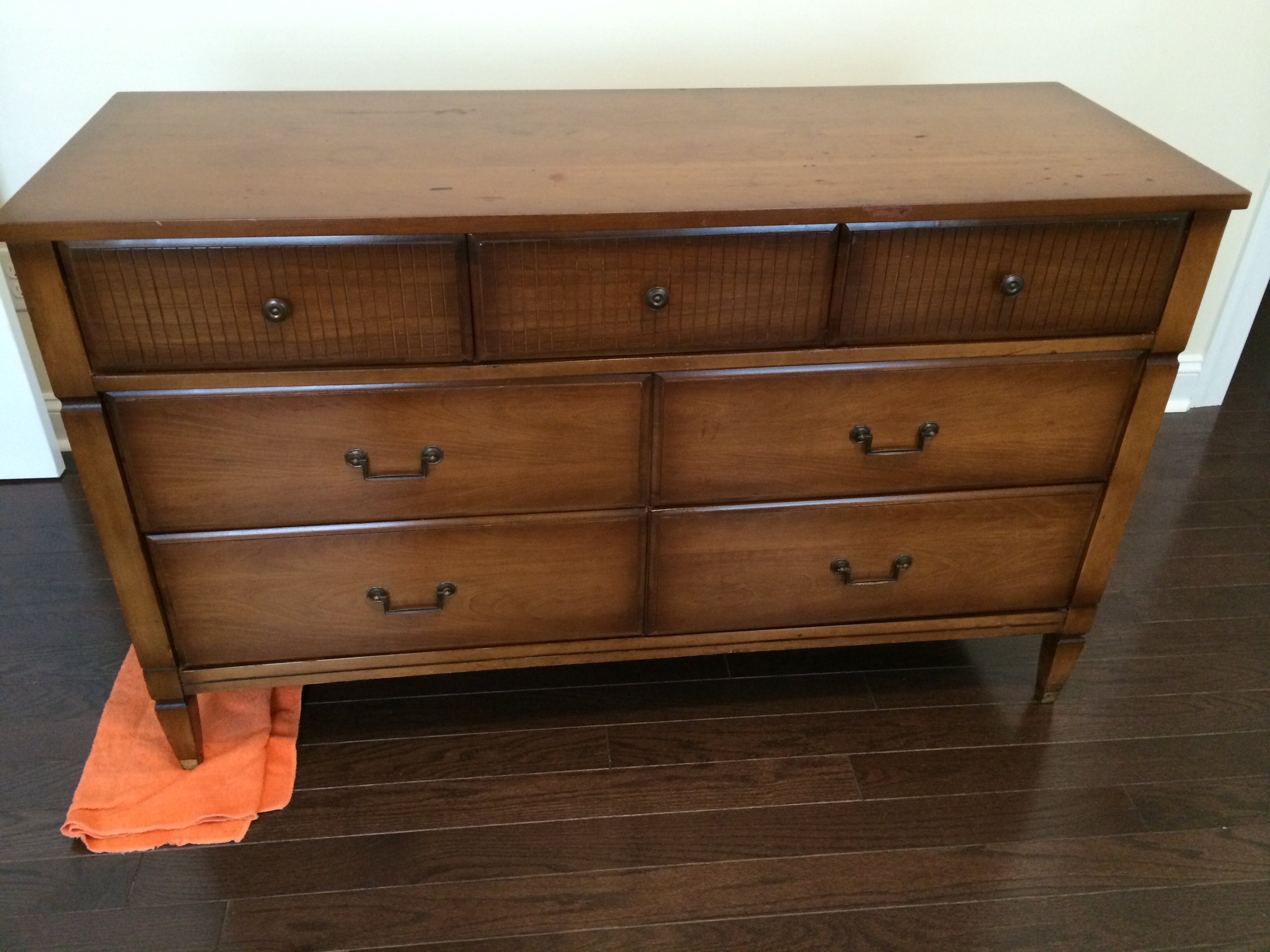 This isn't a craft per-say but I refinished and cleaned up a craigslist dresser I scored for a deal that will be baby's changing table. It's solid wood and I love it!