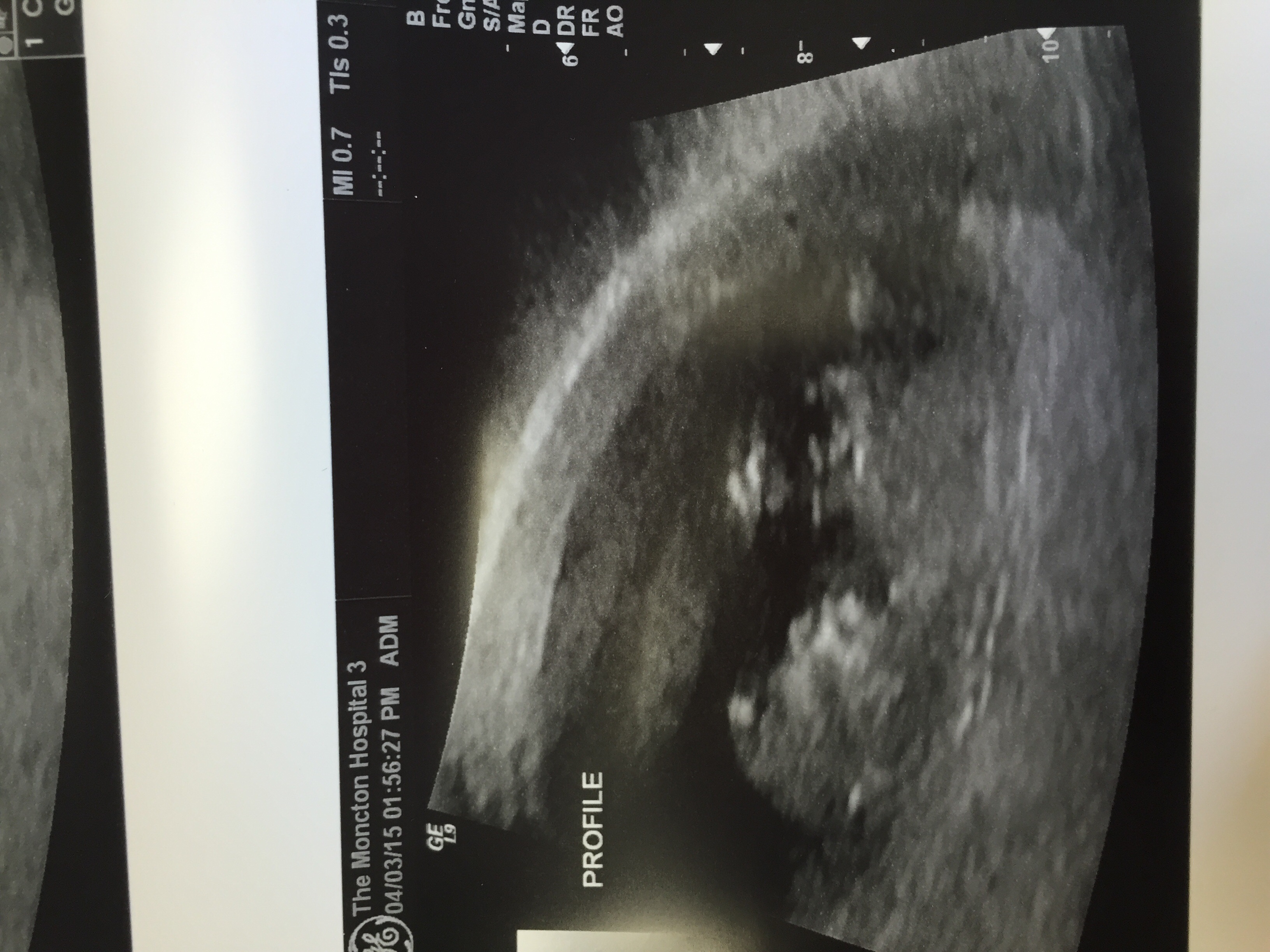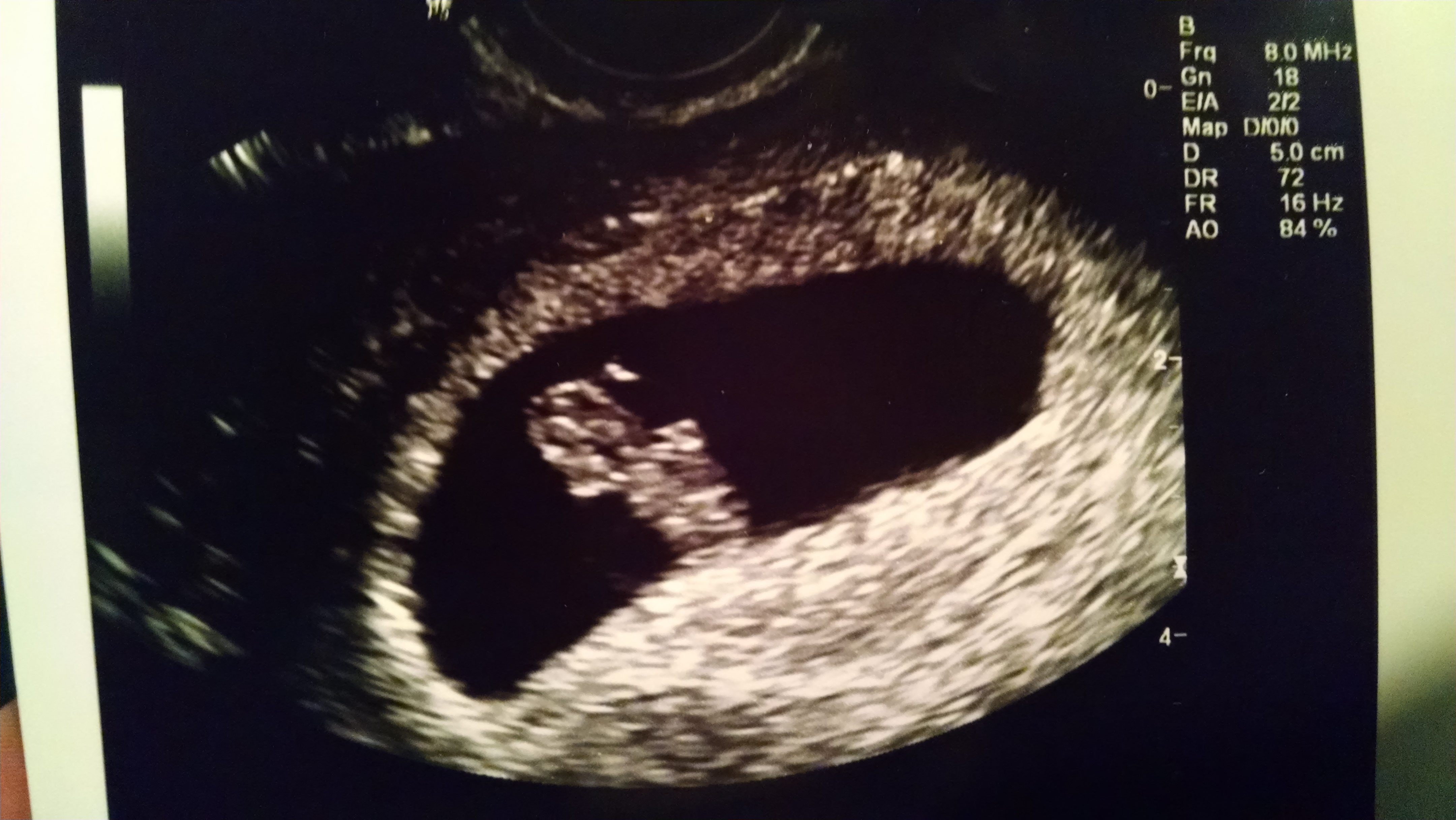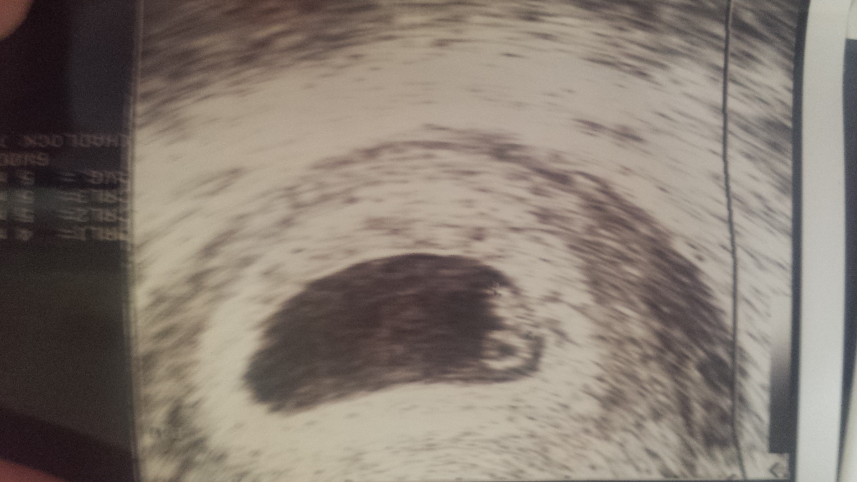 Thank you! So I am really confused...I understand that it's on the left side of the picture, but isn't that the right side of my uterus? That's how it was explained on a blog I read (see pic below...this is explaining for a transvaginal ultrasound). Can you help me understand? As I understand it, you are supposed to hold the picture to your belly upside down (to you, right side up to someone looking at you) and that will show you what side of your body it's on. So as I interpret it, it would be a boy...