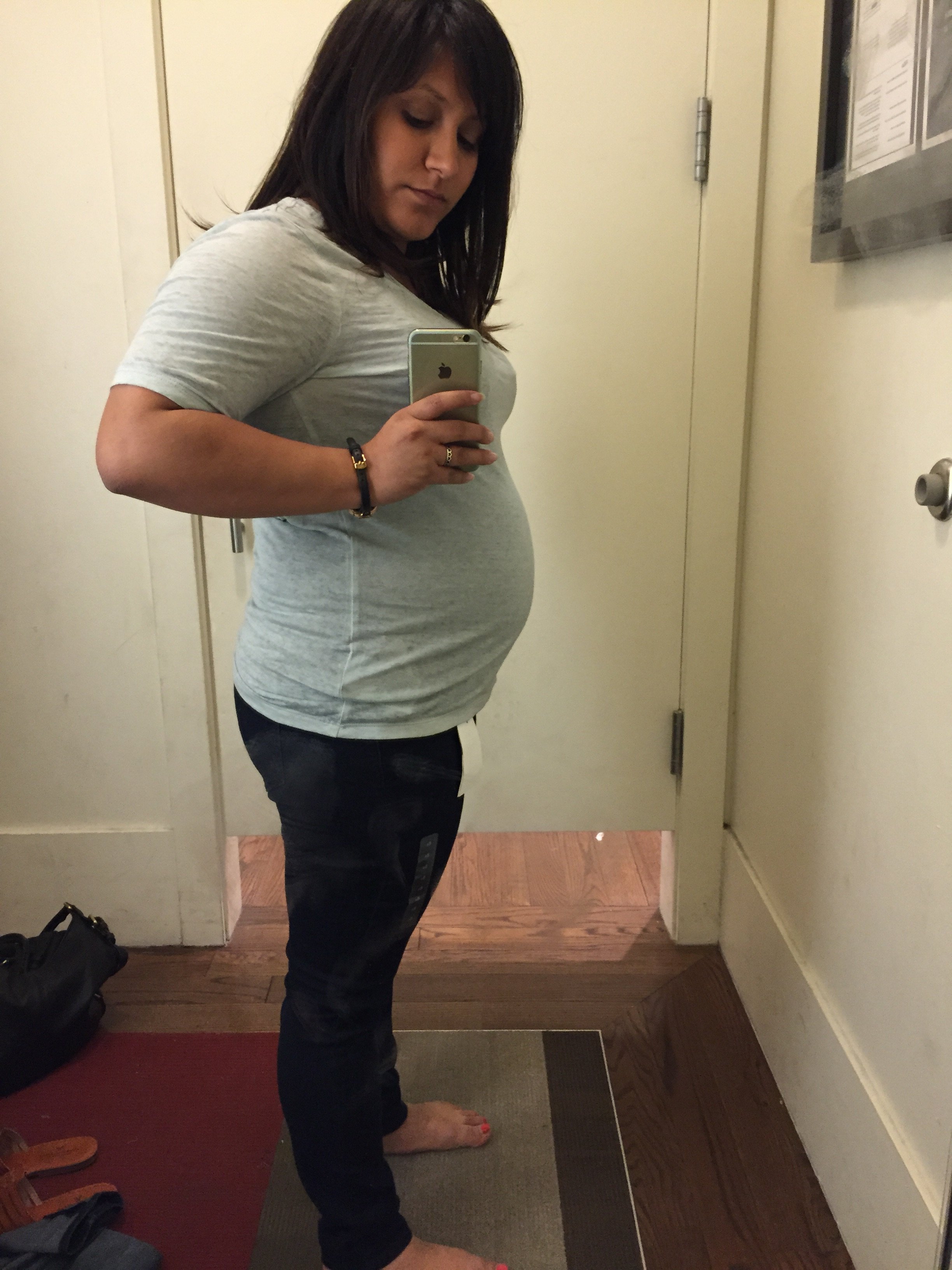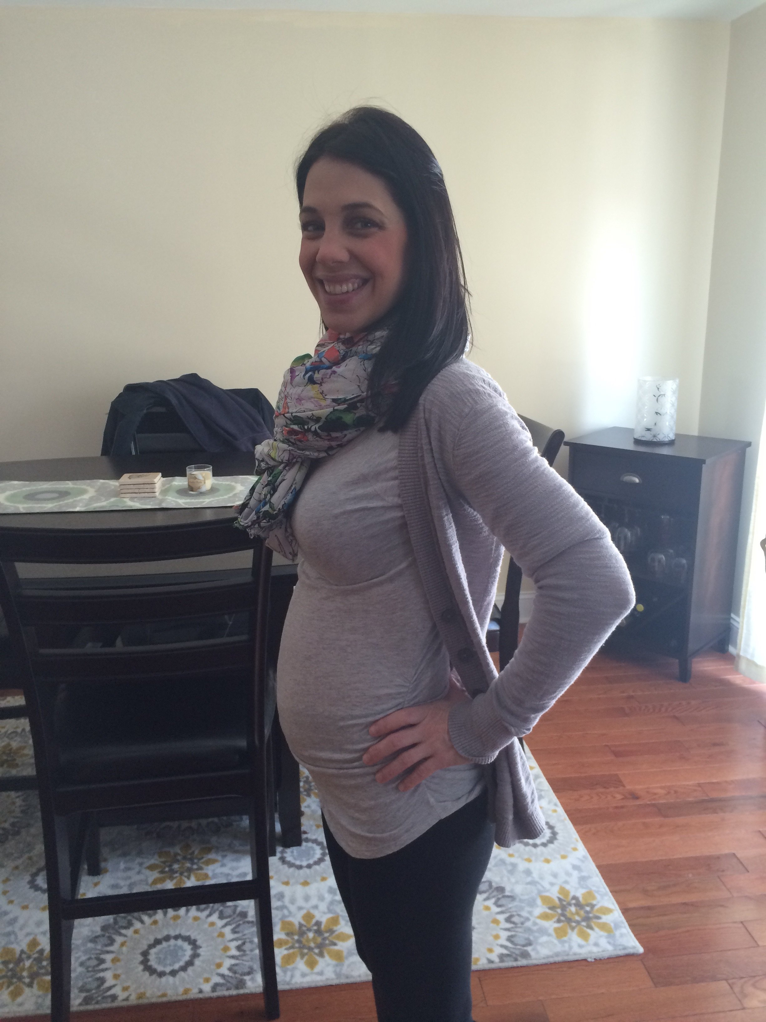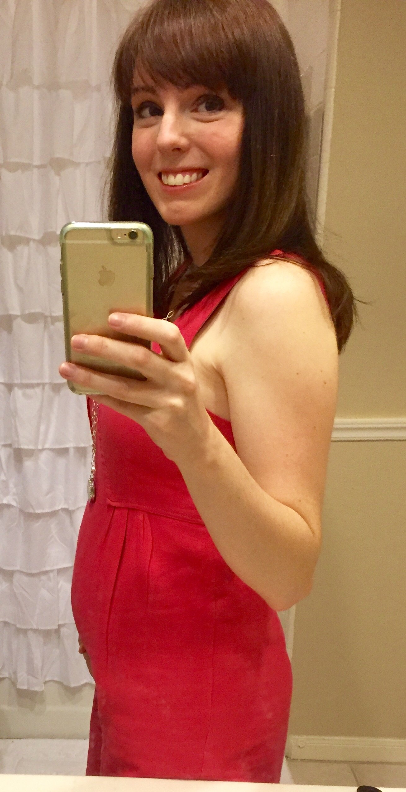 Aww thanks! It's the perk to carrying my weight in my stomach and having weak sauce ab muscles, I guess :-) It's funny how no matter when you pop, there's always something to feel self conscious about--I'm so aware of how huge I am!