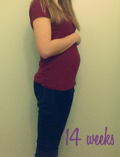It's a little bump, but it's coming along! Pre-breakfast PJ bump at 14 + 4