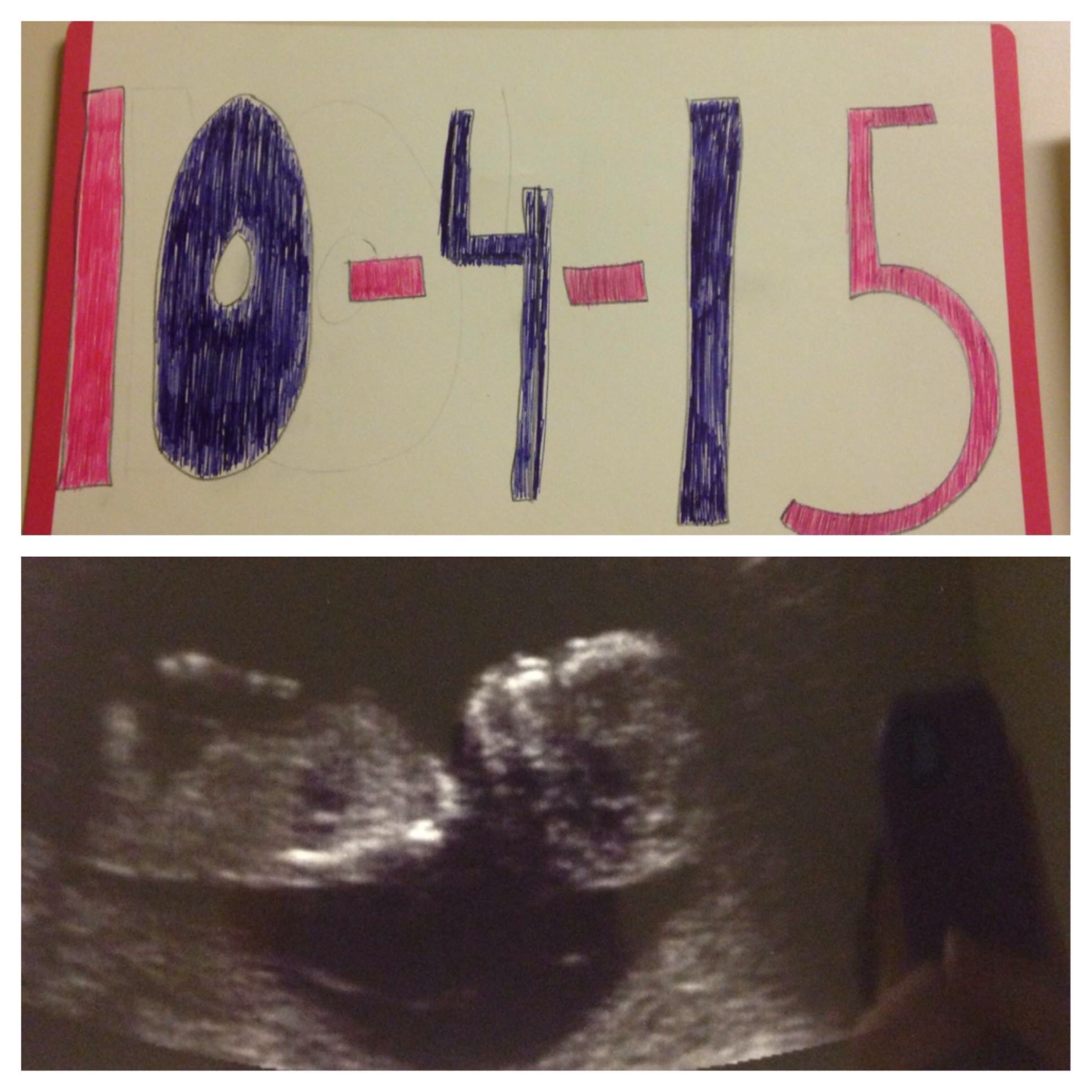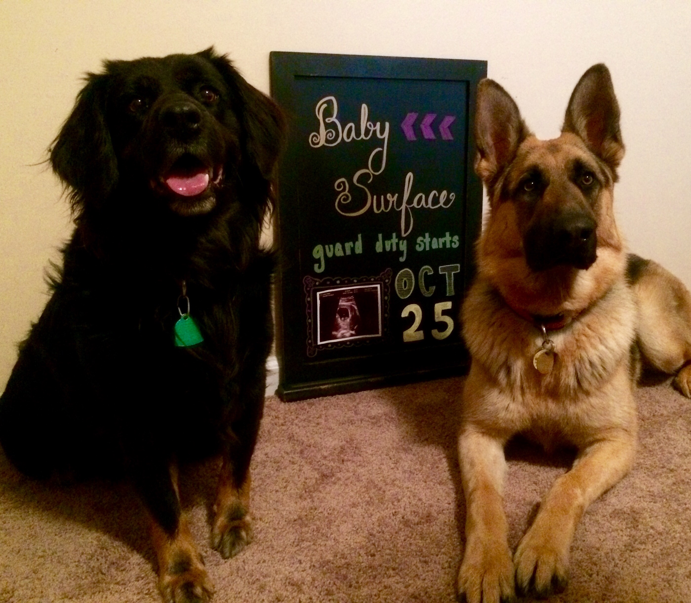 We are posting this on Friday after our 12 week ultrasound and cant wait!!! We just got a puppy in February and he has been a handful. 3 days after we adopted him we found out we were pregnant... so things are going to get more and more hectic! We thought this pic was perfect