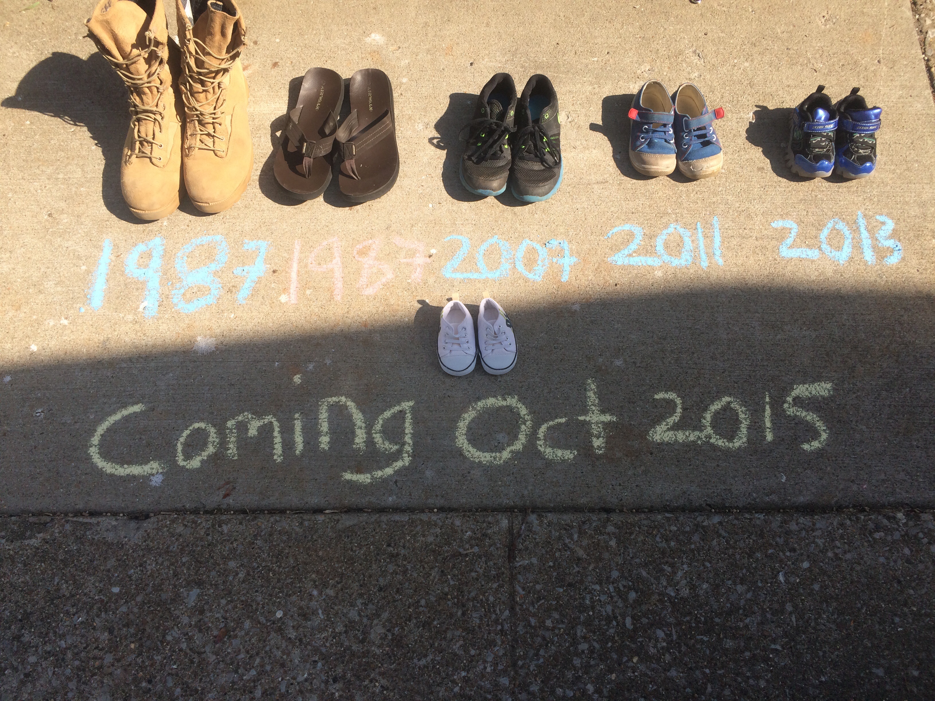We did the shoe picture too except with converse that we all wore in our wedding 2 years ago. (We being my husband, myself, and my ss) we're going to dinner with the whole family next week for my birthday and we will give it to them then!