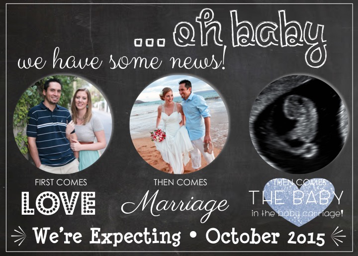 I love everyone's announcements! We haven't posted ours yet even though I am 12weeks 3 days. I have an appointment tomorrow and I want to hear the heartbeat one more time before going facebook public. We took a picture of our golden retriever next to a chalkboard sign that says "Baby B's best friend. Playtime starts October 2015." I'm excited to go public but also nervous with my FTM jitters!