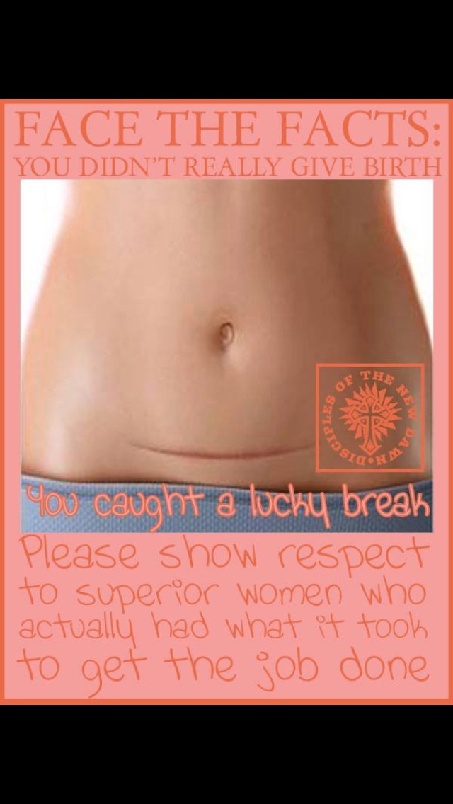Yeah the person who I saw that shared it was actually someone who had had a c section and was justifiably livid. I still just can't believe there are people out there saying and supporting this kind of thing! And so many of them!