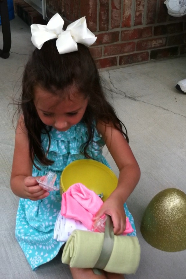 Found this giant golden egg at the store tonight. I put 2 swaddle blankets, 2 pacifiers, and a big sister shirt inside of it. Going to hide it with all of the regular eggs for DD to find on Sunday. We will be with my parents and grandparents that day. Can't wait!!!