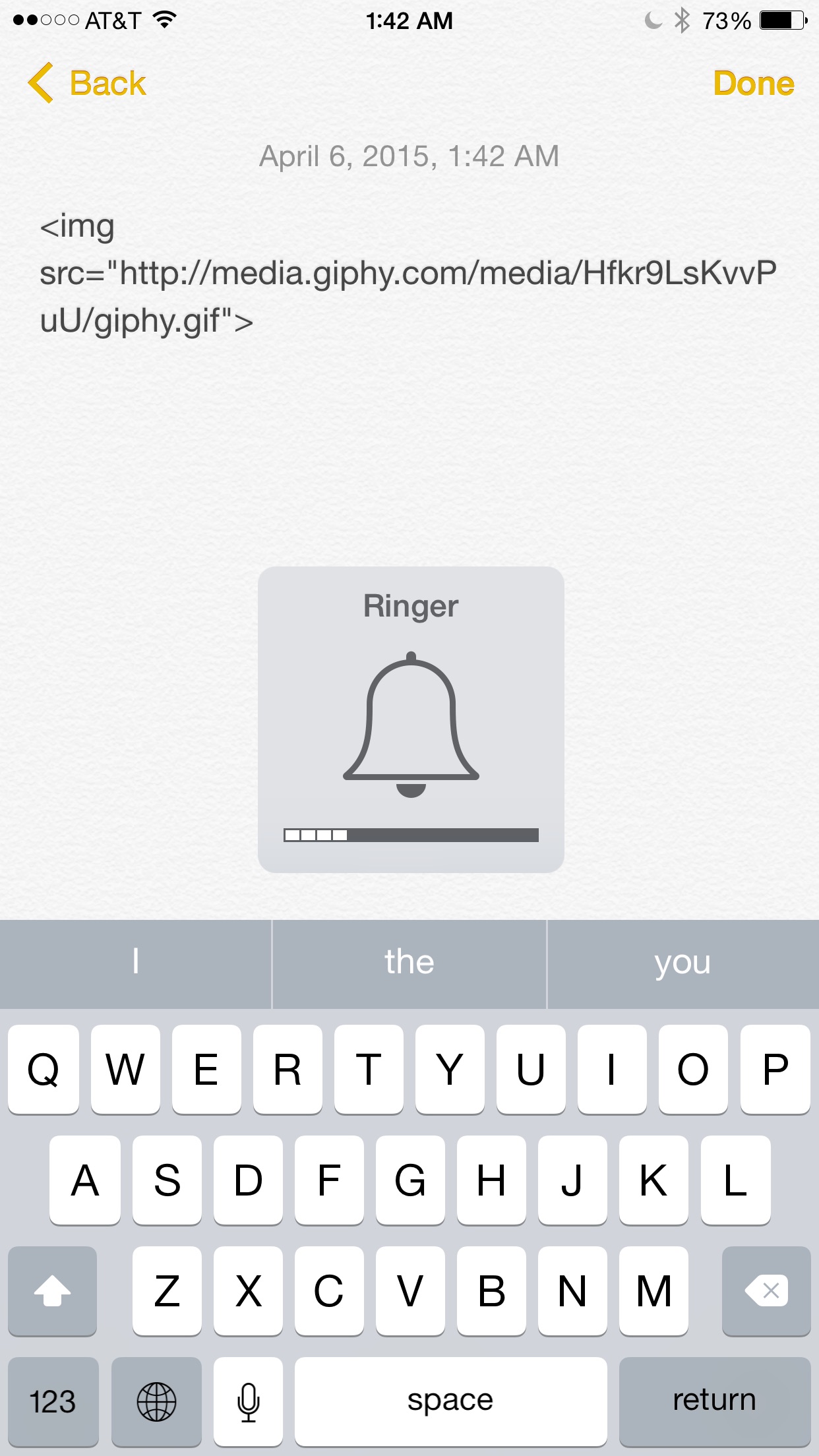 5. Copy your link right next to the first quote like this: <img src="https://media.giphy.com/media/Hfkr9LsKvvPuU/giphy.gif