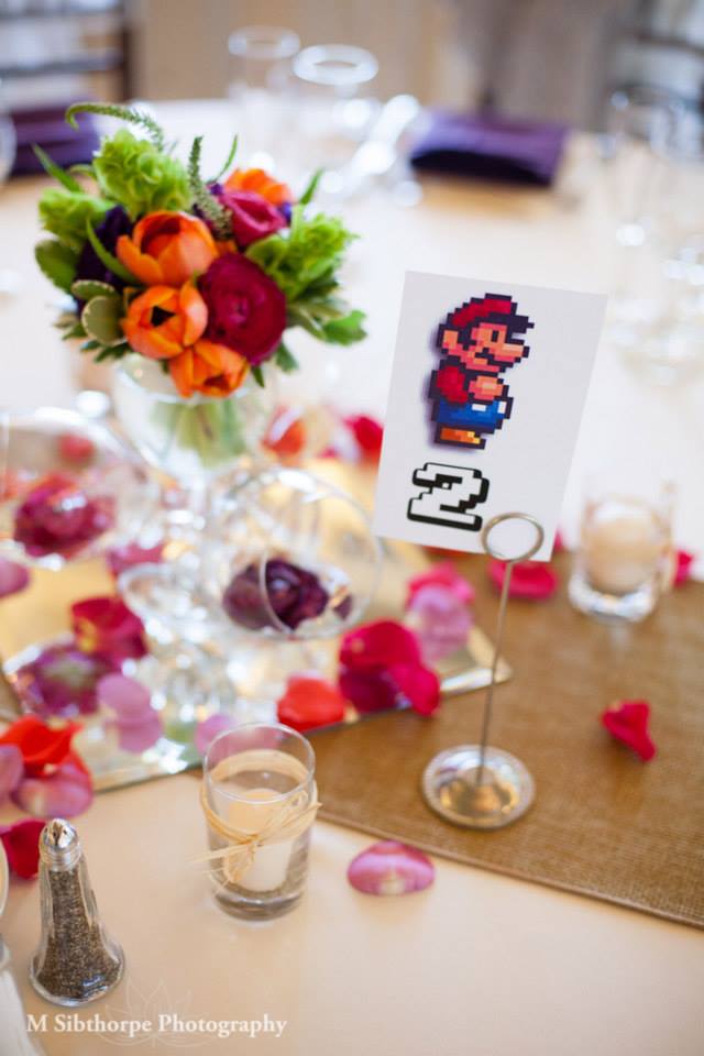 A super Mario themed wedding sounds amazing!! I love video games but I'm not very good at them. My DH is game obsessed- he collects 80s arcade games and pinball machines. Our house is full of them. We just moved so now we have an actual arcade downstairs with neon carpet and black lights- kind of crazy but it beats or previous setup where we had a PacMan machine right in the middle of the kitchen!