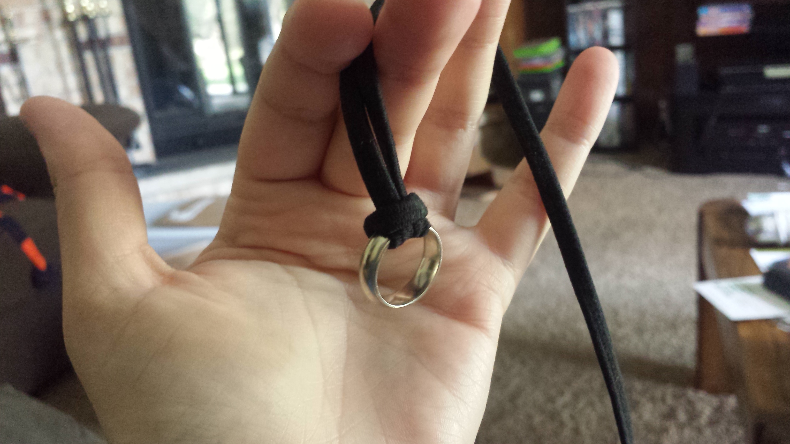 This is not the 1st time my ring has jumped off its mooring like that, but it IS the first time its done it when the cord was around my neck. (Cord is essentially a big ass hair tie, one solid piece of stretchy fabric)