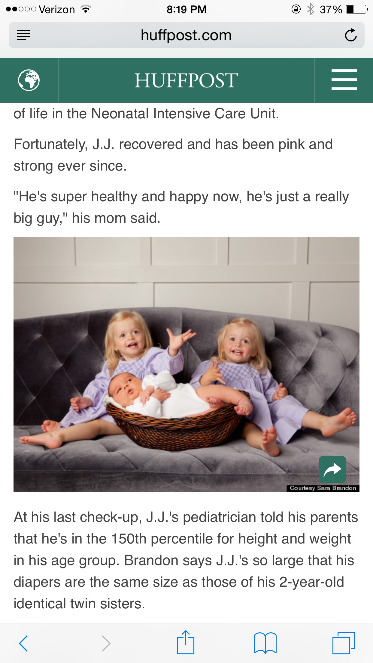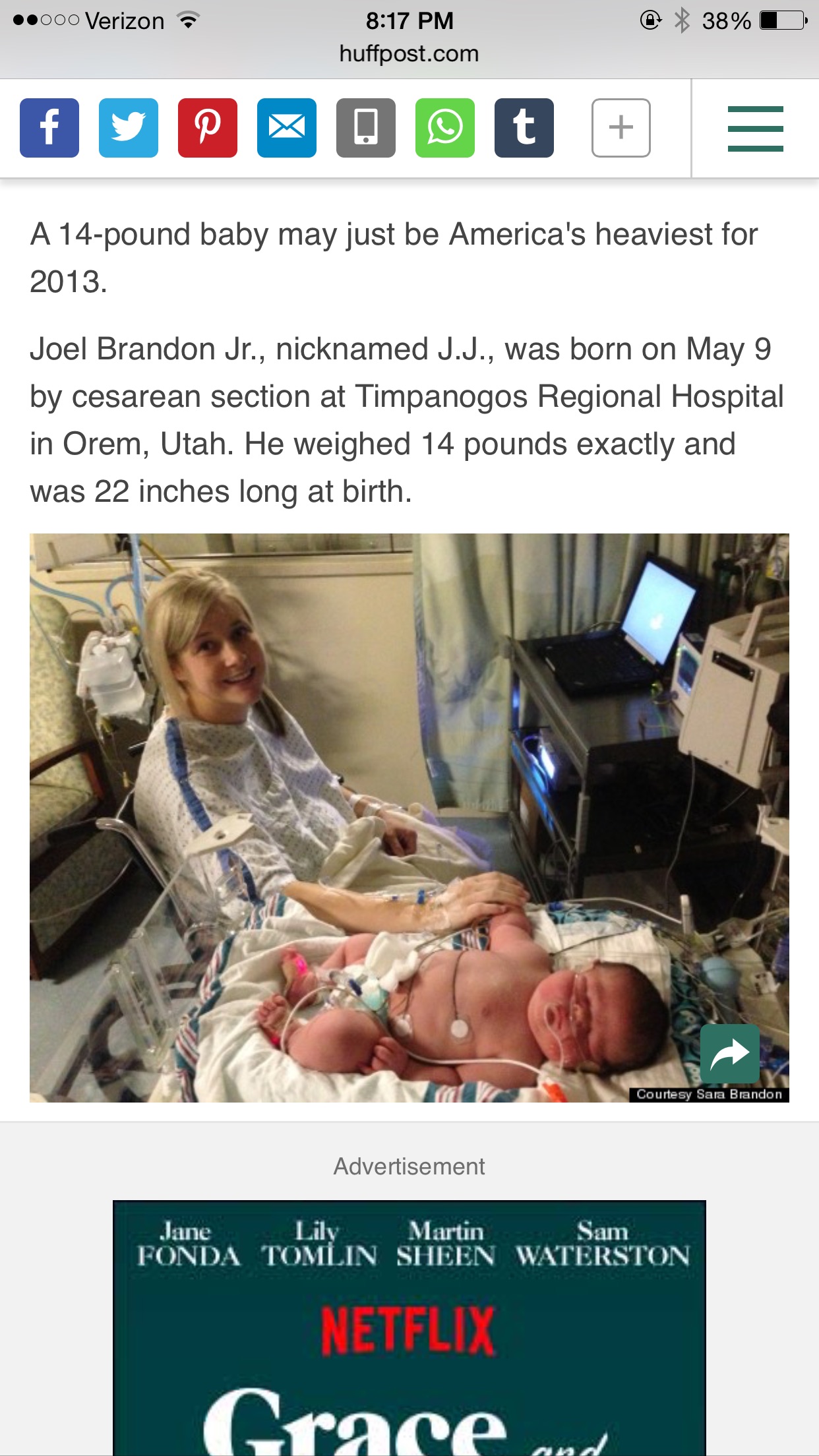 One of the girls in my twin group had a 14 lb baby. He was almost the biggest baby of the year. She has type 1 diabetes so that is why he was so big...but seriously a gigantic baby. I would post a pic but I want to protect her privacy. She might have had a news article though...let me check into it.