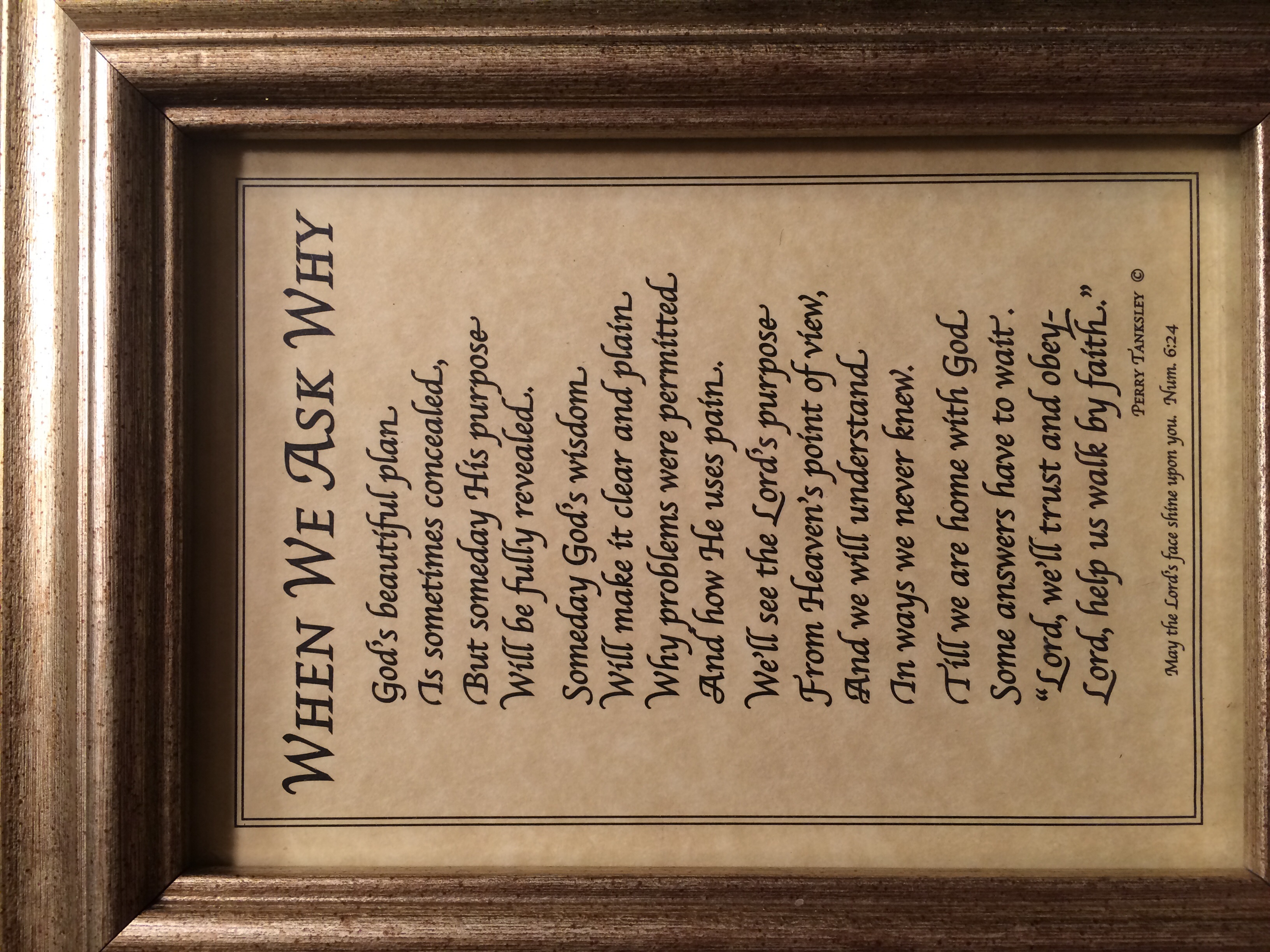 There God in Jesus went to the bottom of all that ails us, all the sin that kills us. It killed Him, too, but not for long. He lived again, rising from the dead in wonderful, amazing victory. God’s only answer to our question why? is the death and resurrection of Jesus.