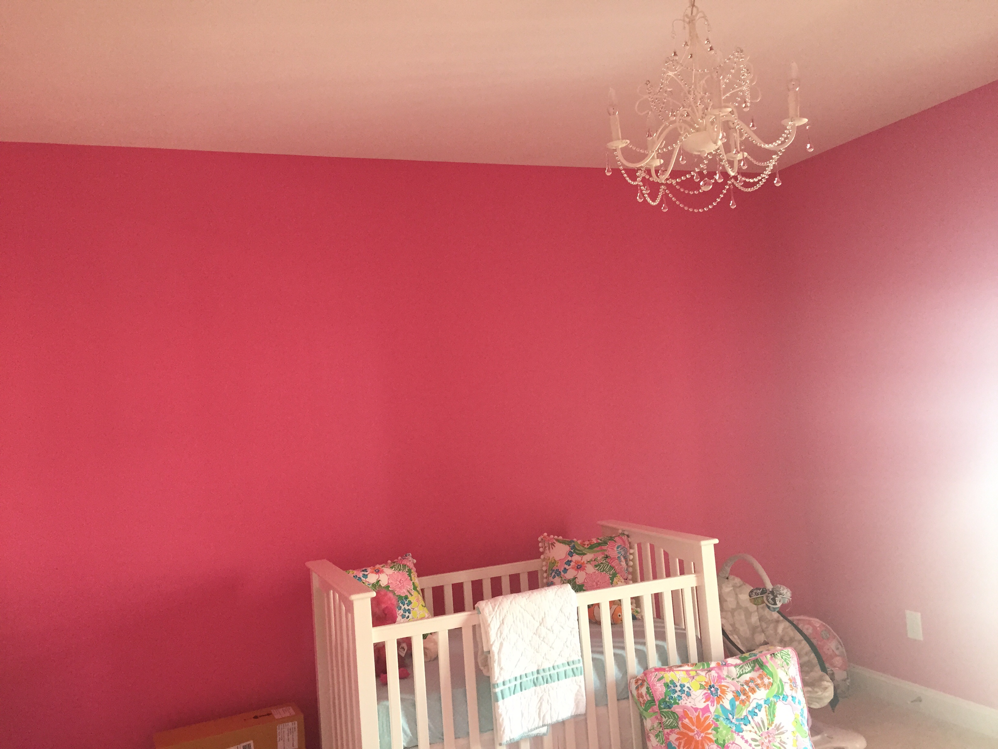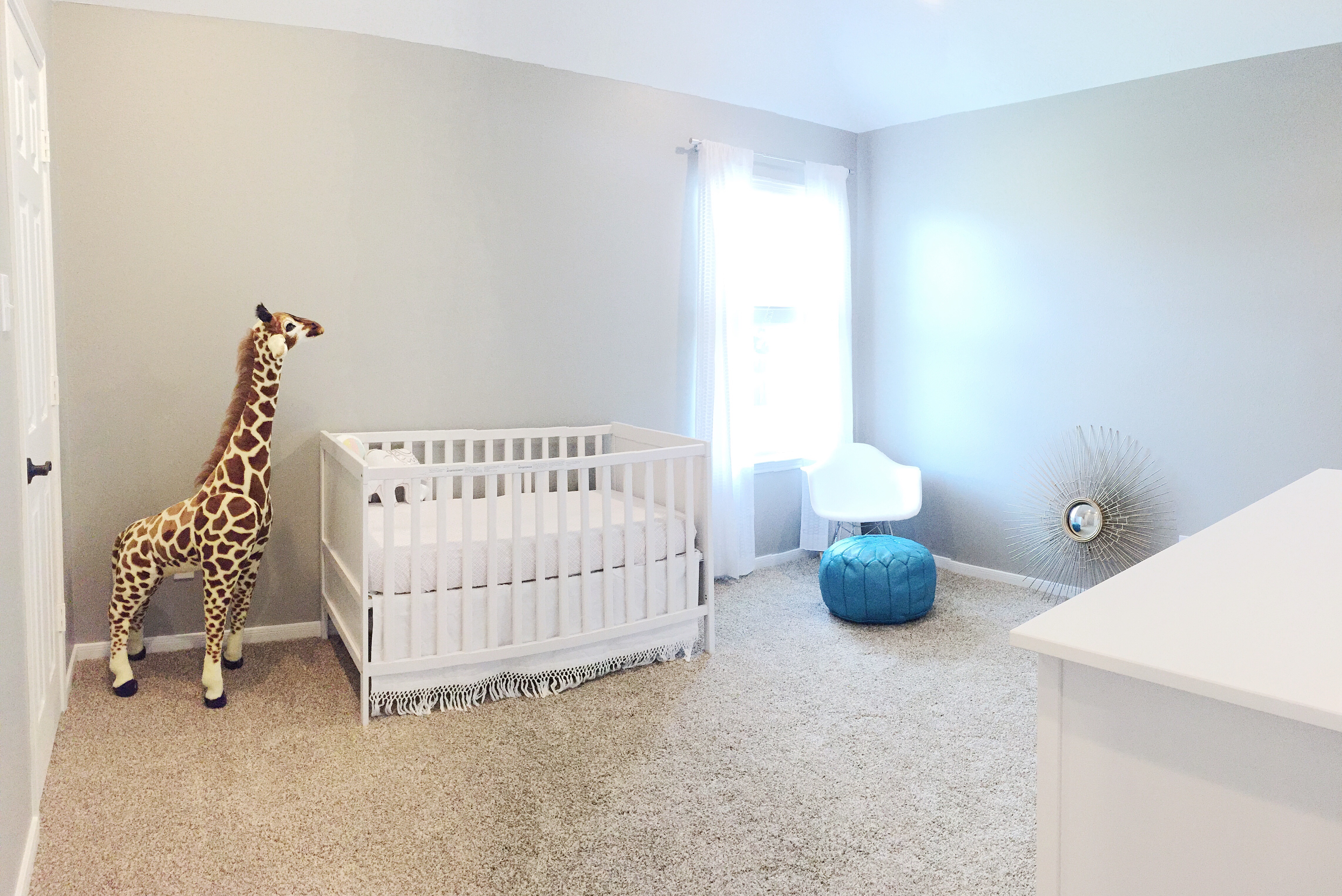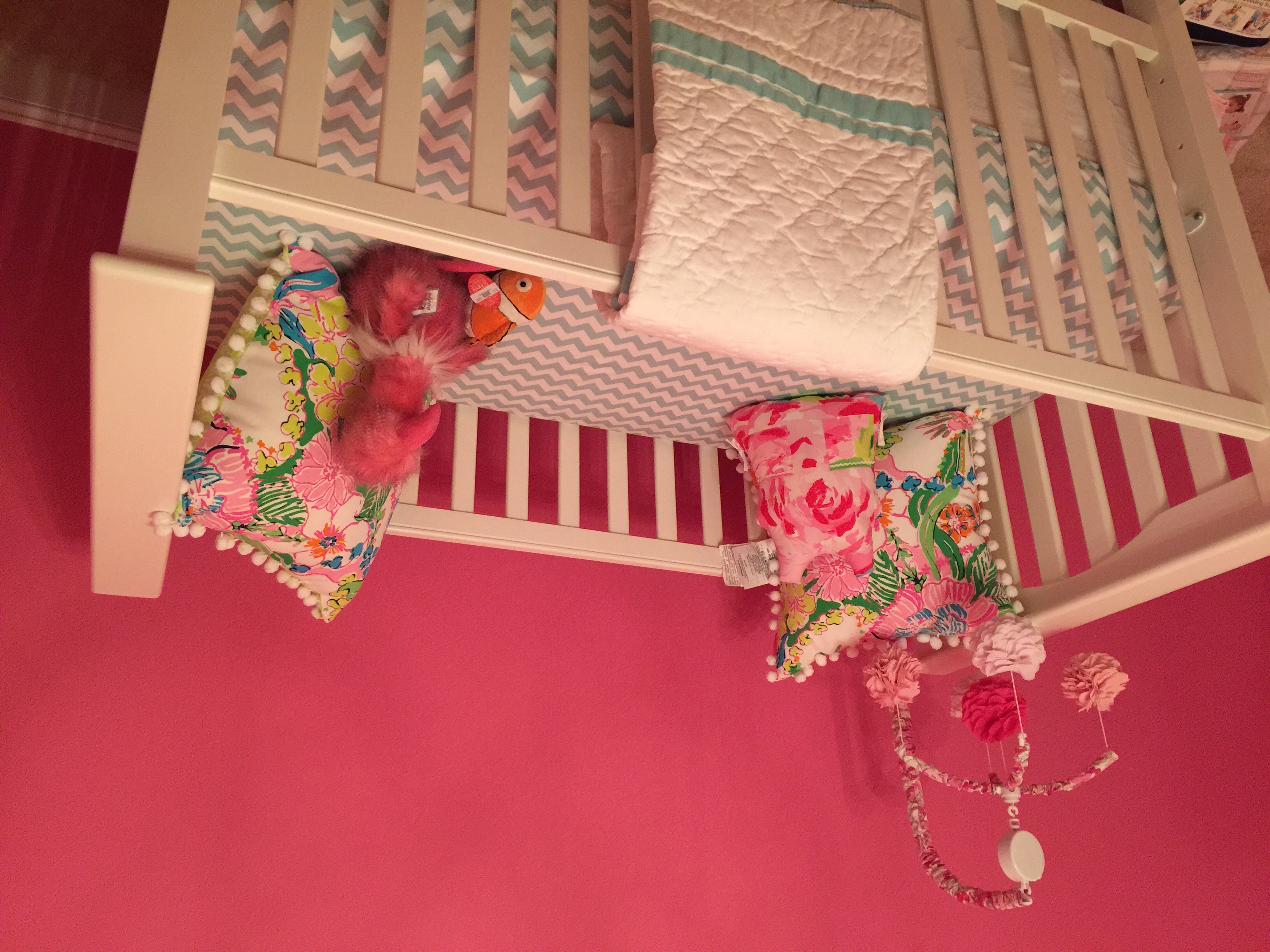 Obviously not finished (or anywhere near it!) and don't worry, the pillows and stuffed animals aren't staying in the crib- just didn't want them on the non-vacuumed floor! The furniture is also not where it's going to end up being placed!