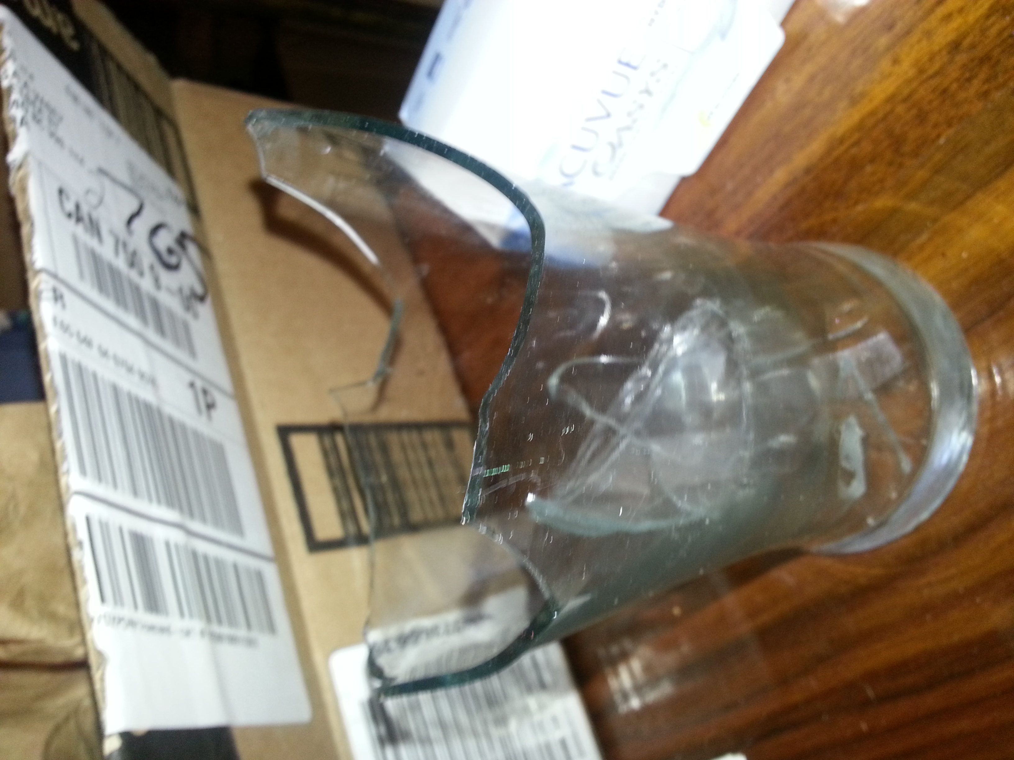 SO wants me to throw away the broken glass that's sitting on our nightstand. But I don't want to because I like its new shape and have become quite attached to it. He thinks I'm nuts, but victory was mine.