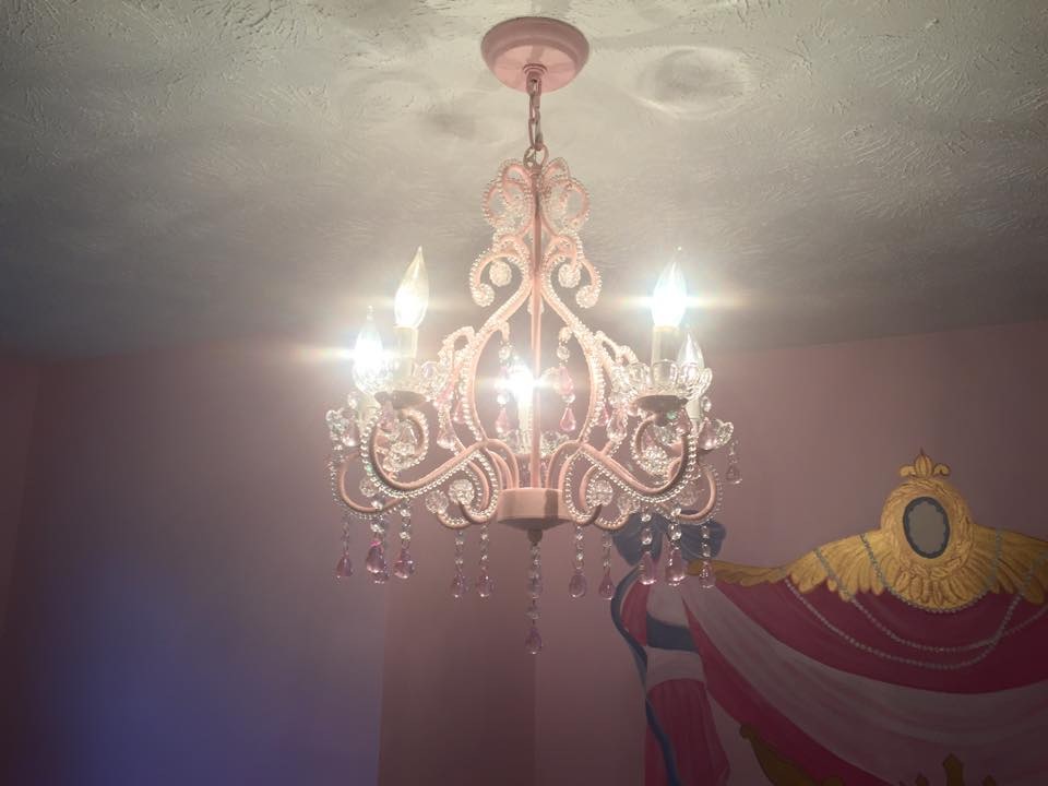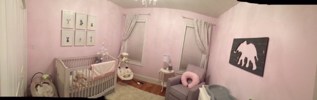 QOTW: I only have pictures of part of the nursery. We are going totally princess with a Cinderella mural, and Cinderella's castle is also painted on one wall. We have a pink chandelier and white furniture. I will post pics of everything else when it is finished. My mom paints children's murals, so the painting is all her work.