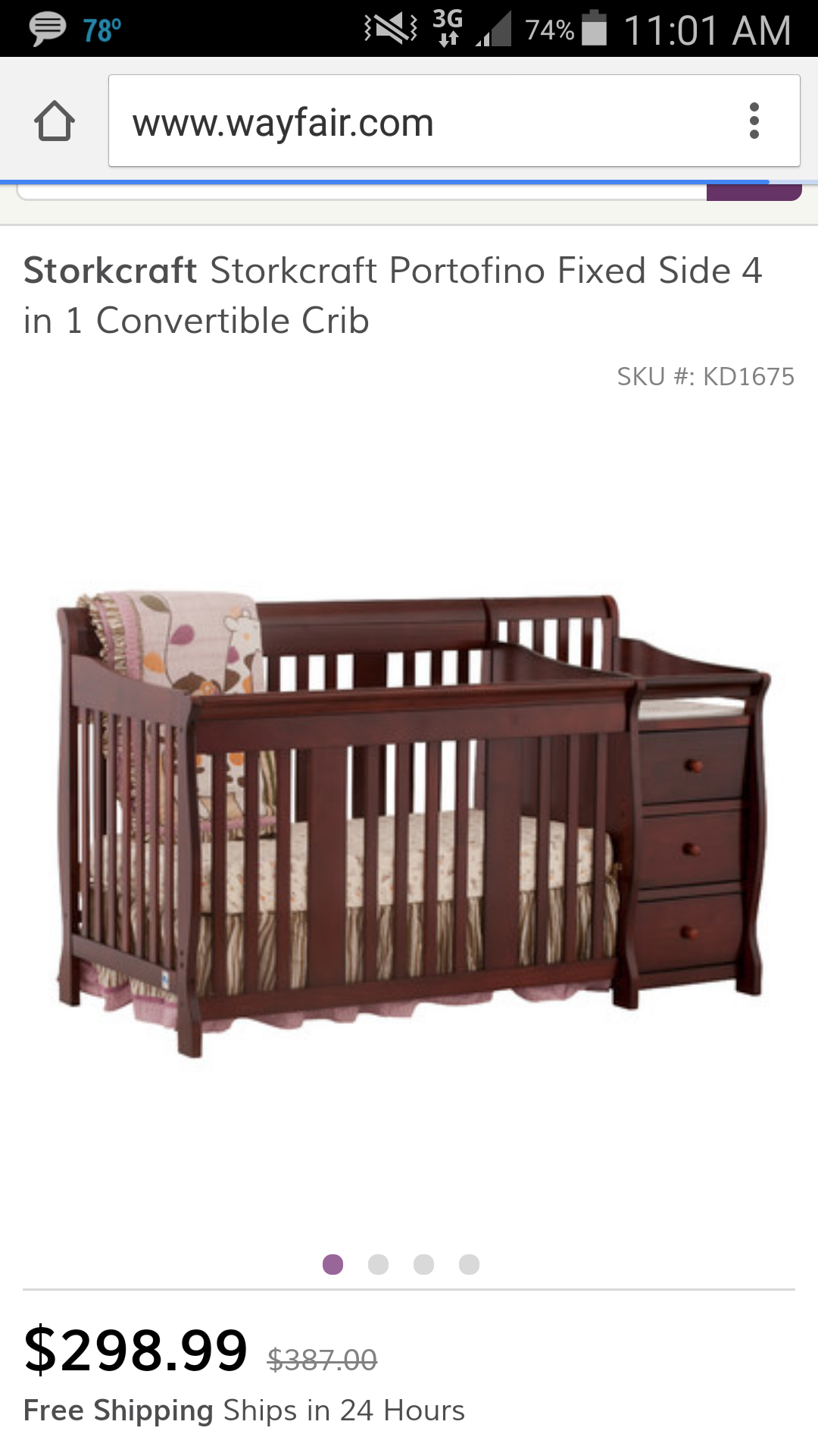 The crib is a crib and changing table combo. It is also a convertible. It comes with the toddler rails. We got it in Cherry. I think when taxes and everything were said and done it came to about $340. It also has a lot of good reviews on their website. Shipping is free! It should be arriving this week!