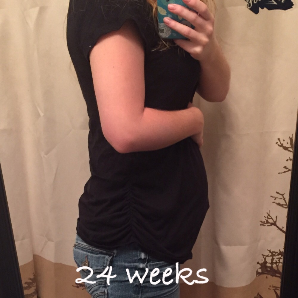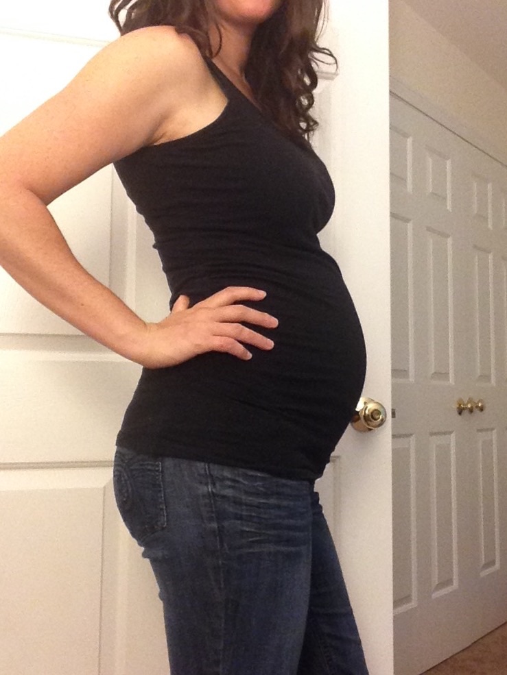 I need a full length mirror. Oh well. Here's the belly, a couple days shy of 23w. Anyone else feel like they're carrying low and wide? Since my fundal height measured a little short last week my mantra this week was, "Uterus, rise!"