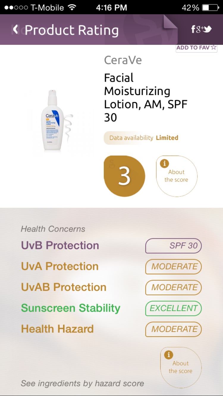 The app is cool because you can scan the barcode on your products or search the database. A large number of CeraVe products came up so I'm not sure which one you are looking at. They don't have great ratings though.