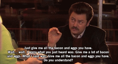 Also- I meant to find a Ron Swanson giggling gif re: me enjoying the thread, but found this instead. Which is appropriate bc it's morning and I'm starving.