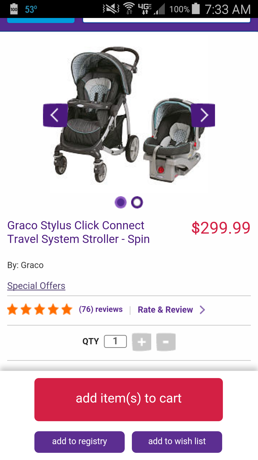 We were at target just looking (my mother and I) and they had about 10 different floor models out with all different price points I was able to push, lift, and test all of them. I definitely wanted a travel system and I ended up going with the Britax B Agile since it was the first one I really loved, came in all black and couldn't find one I liked better. It's now on my registry with two extra car seat bottoms for DH and my mom.