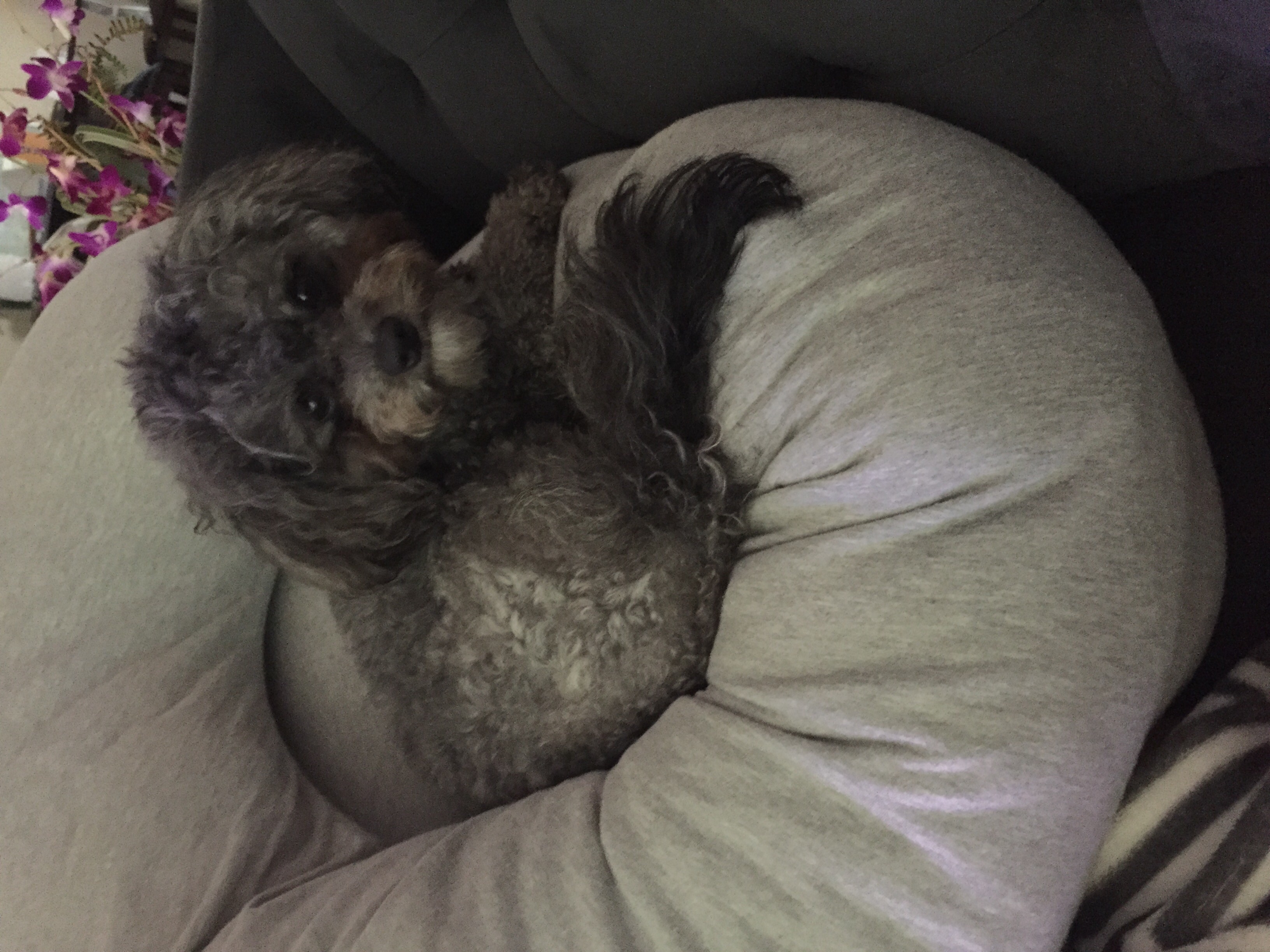 I love the snoogle! It took me awhile to get the hang of it. Now I leave it with the long part along the outside of the bed and roll inside it during the night. When I get up in the morning I push the bottom bit off on the floor. There is no barrier between my and DH during the night that way. I should say I also use an additional two normal pillow under my head and hug a third pillow to my chest/under my belly. I hated having a separate pillow between my legs and along my back. I was constantly losing them and spent half the night rearranging pillows.