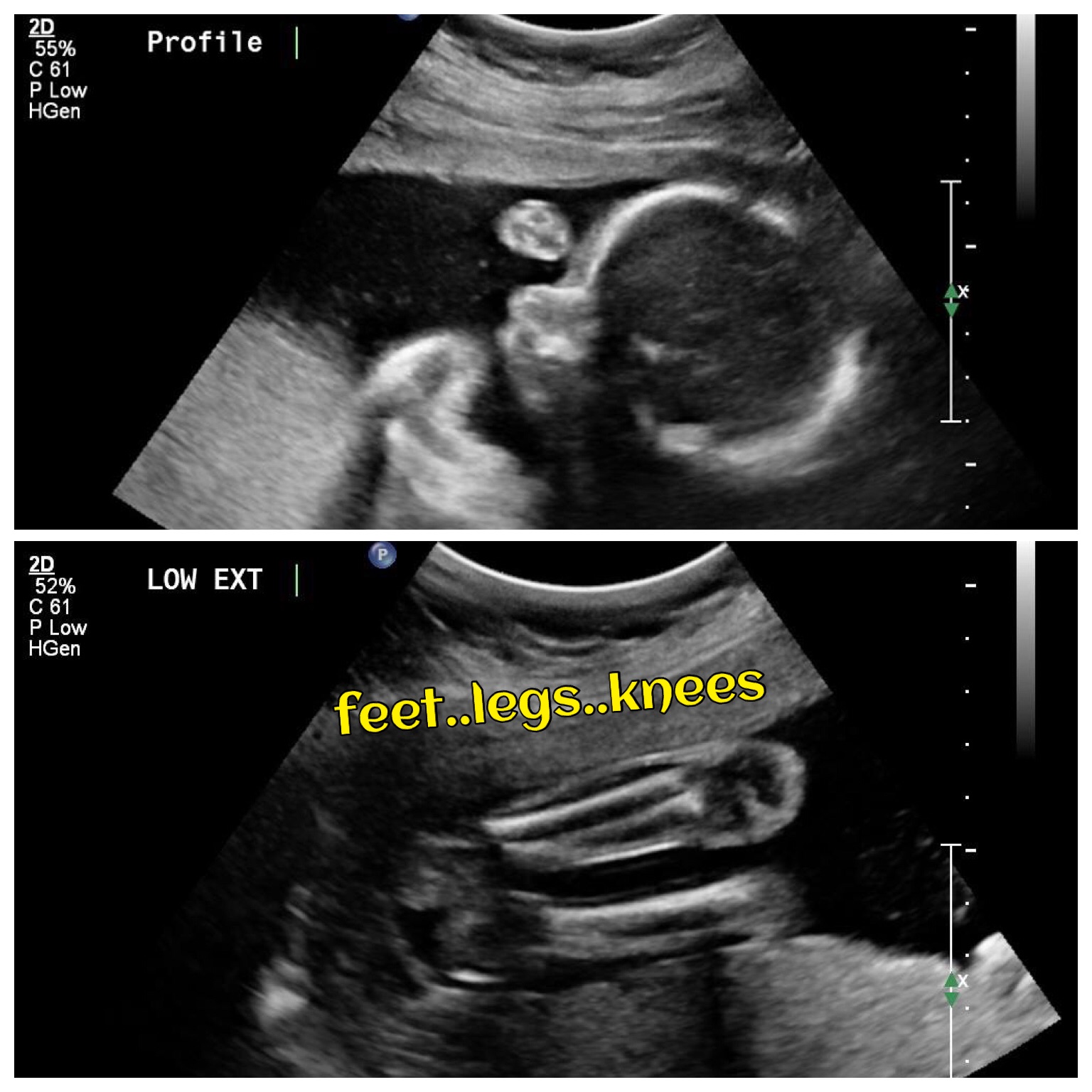 Well baby did not want to be in photos today lol Hand on the face the WHOLE time, kinda sucked but oh well. Back in 4 weeks. All measurements RIGHT on track which is weird for me. All my kids measured big!! 1 pound 9 ounces. Too smooshed for length. Only 2 good photos are a profile and some legs lol