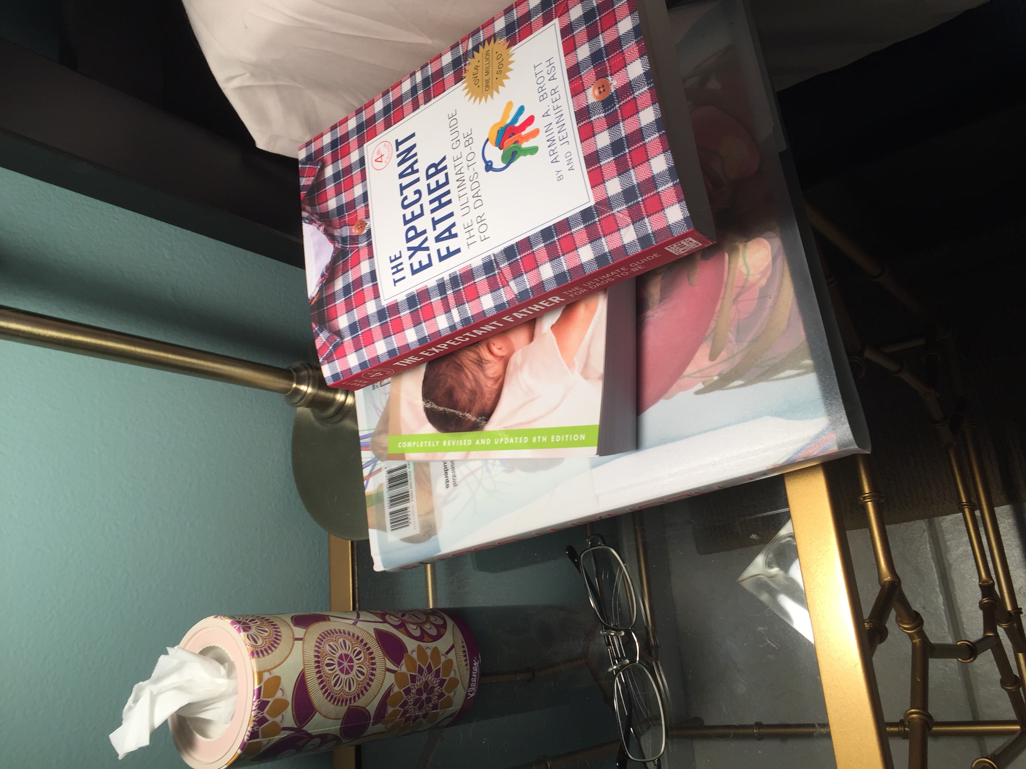 I'm late to this, but had to post. Was making the bed and saw DH's little accumulation of dad/pregnancy books. I think my volleyball-sized bump is making this feel more 'real' now