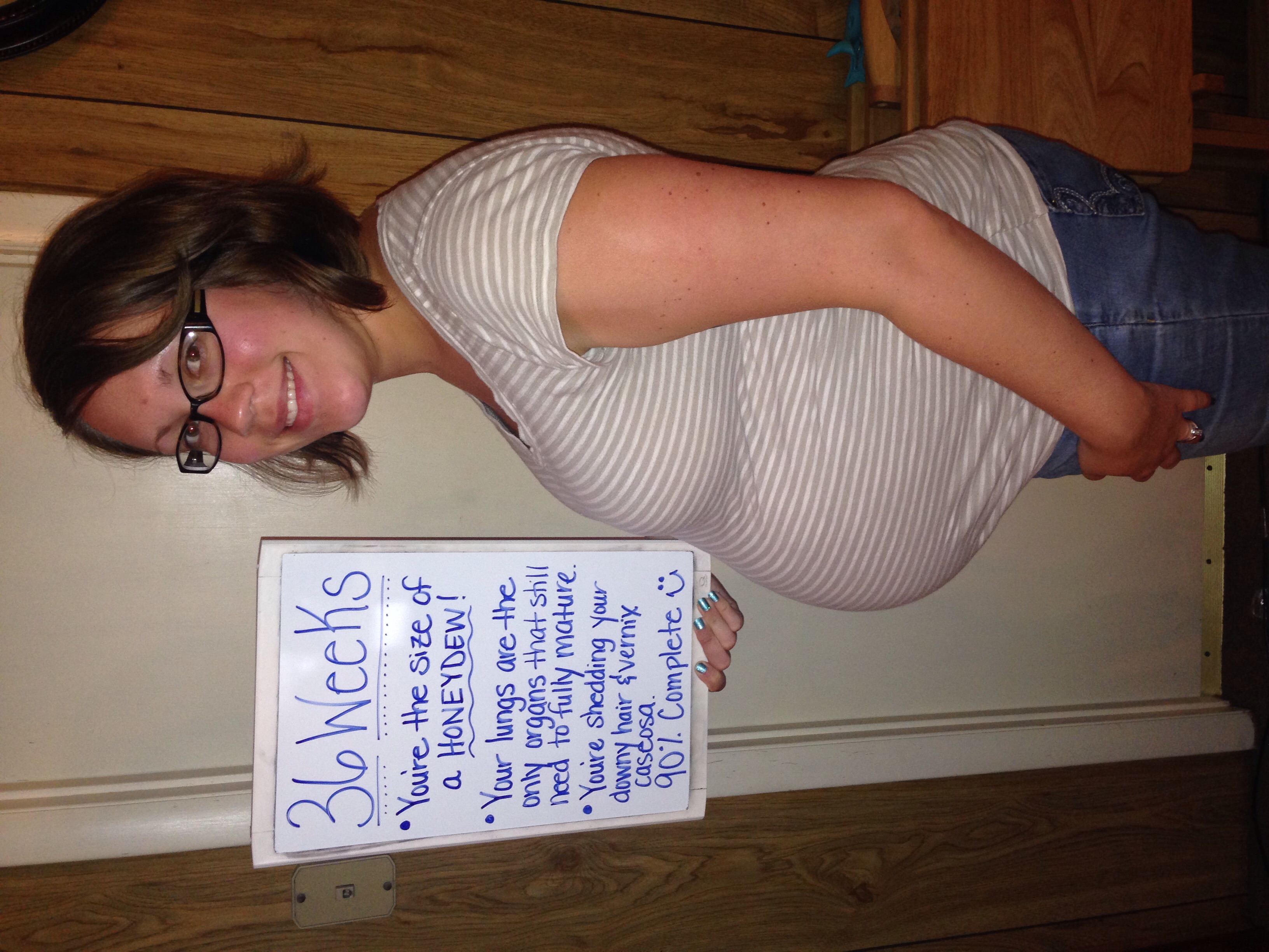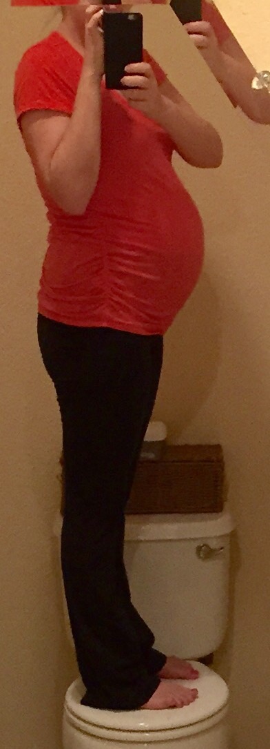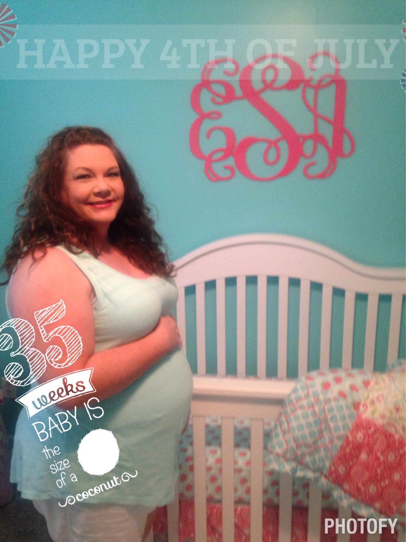 This was from Saturday. I'm now 35.4 with baby girl. Can't wait to meet her! 4 1/2 more weeks .... Maybe. Excuse the blurry picture. DH couldn't get off his little iPad game long enough to take a good pic.