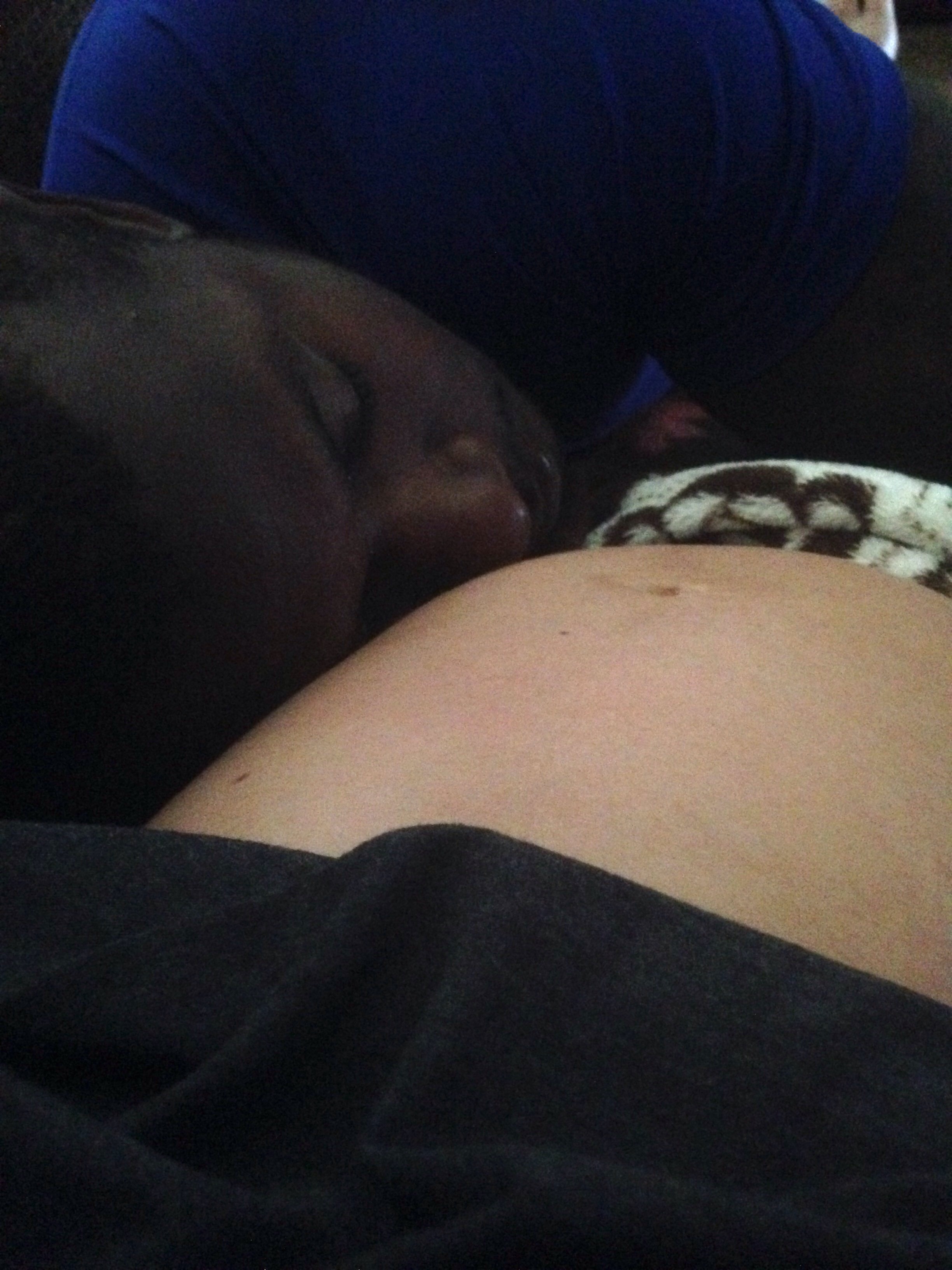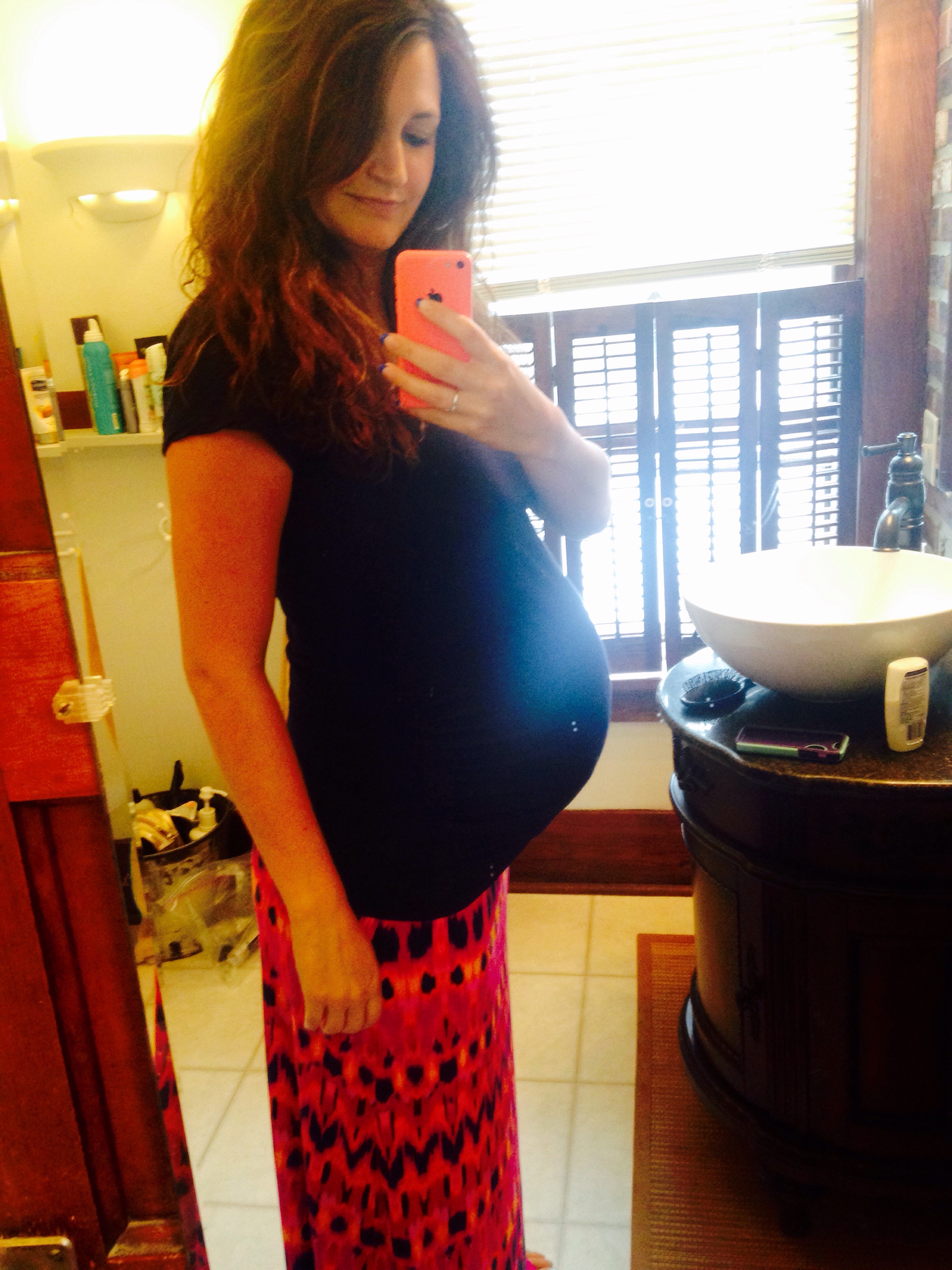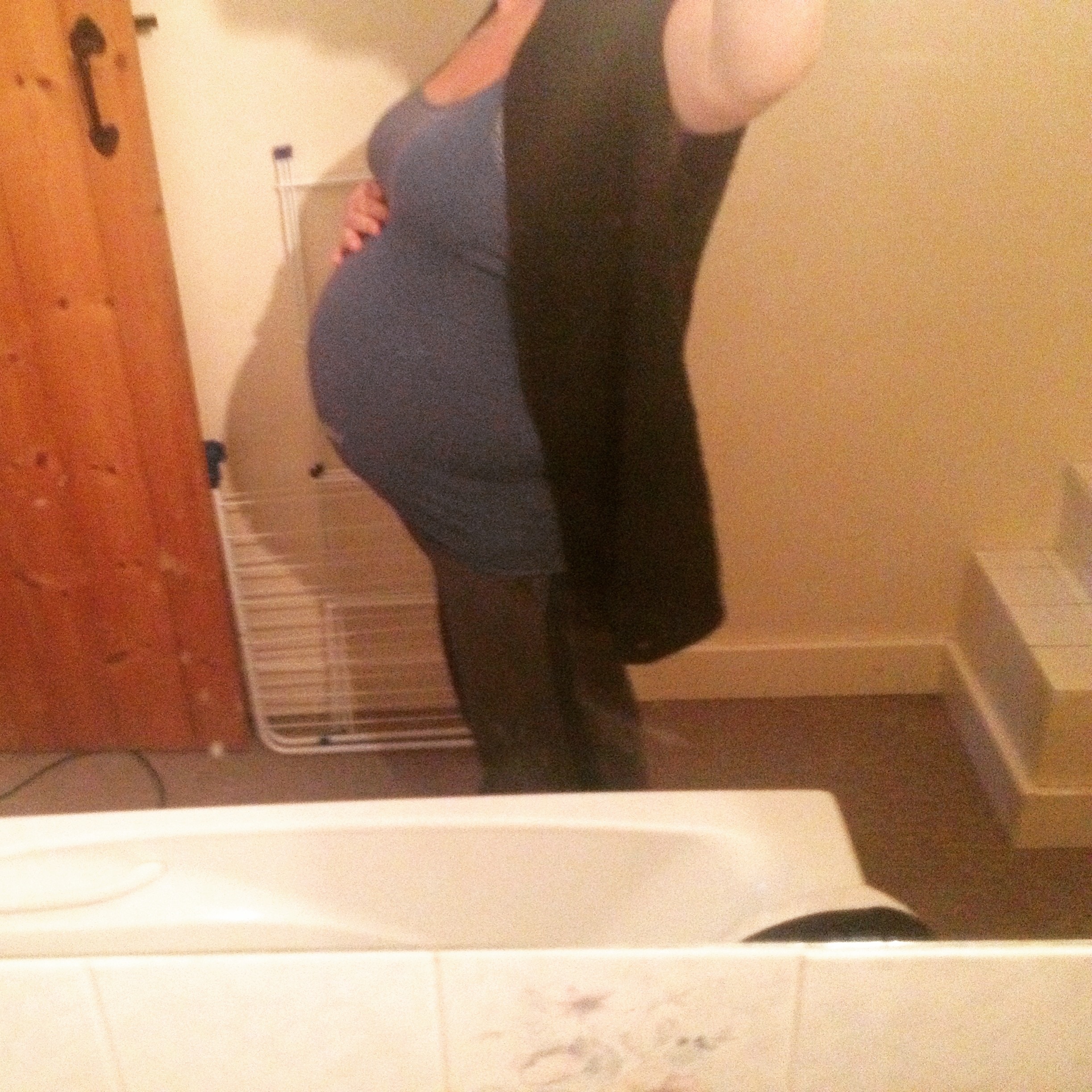 This was from Saturday. I'm now 35.4 with baby girl. Can't wait to meet her! 4 1/2 more weeks .... Maybe. Excuse the blurry picture. DH couldn't get off his little iPad game long enough to take a good pic.