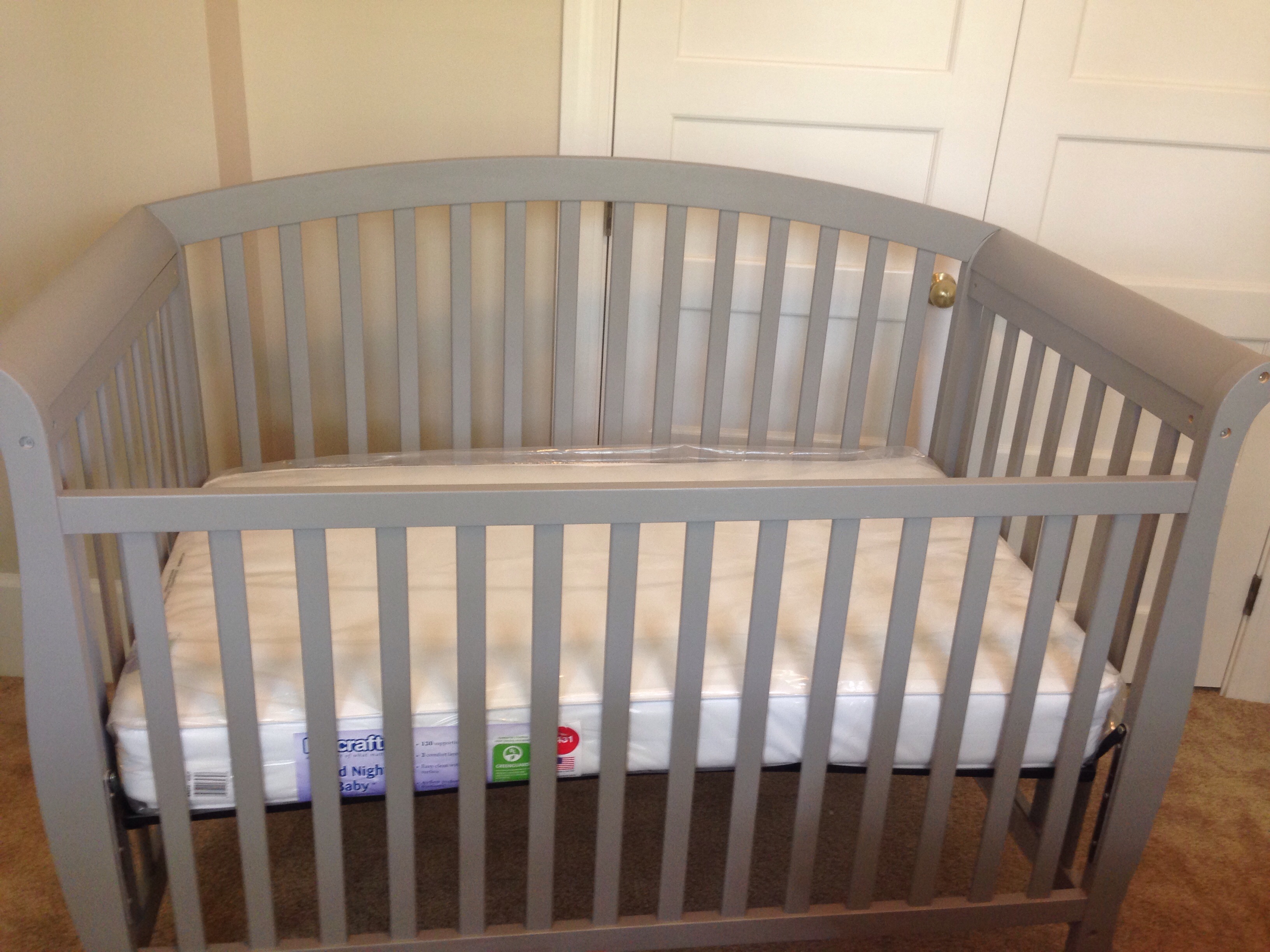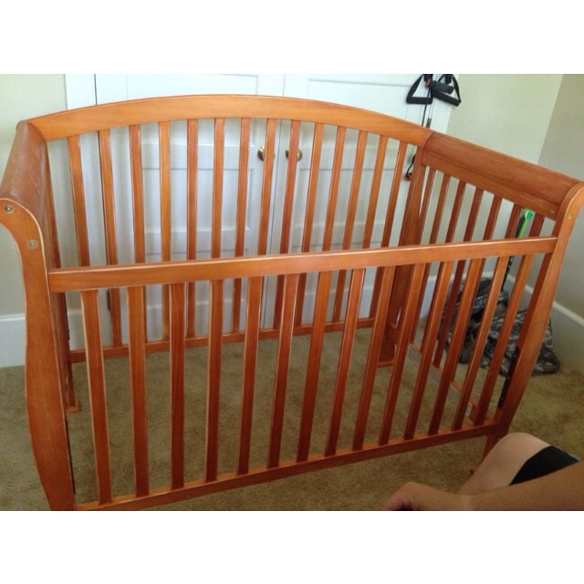 I sanded it really well to take the lacquer off of it and then put 2 coats of paint on it! It's was very easy, just time consuming. I got ours at a consignment store with the hardware to transition it into the toddler bed for $40. After paint and materials wound up costing me about $80 altogether! Well worth the 2 days of mess for me!