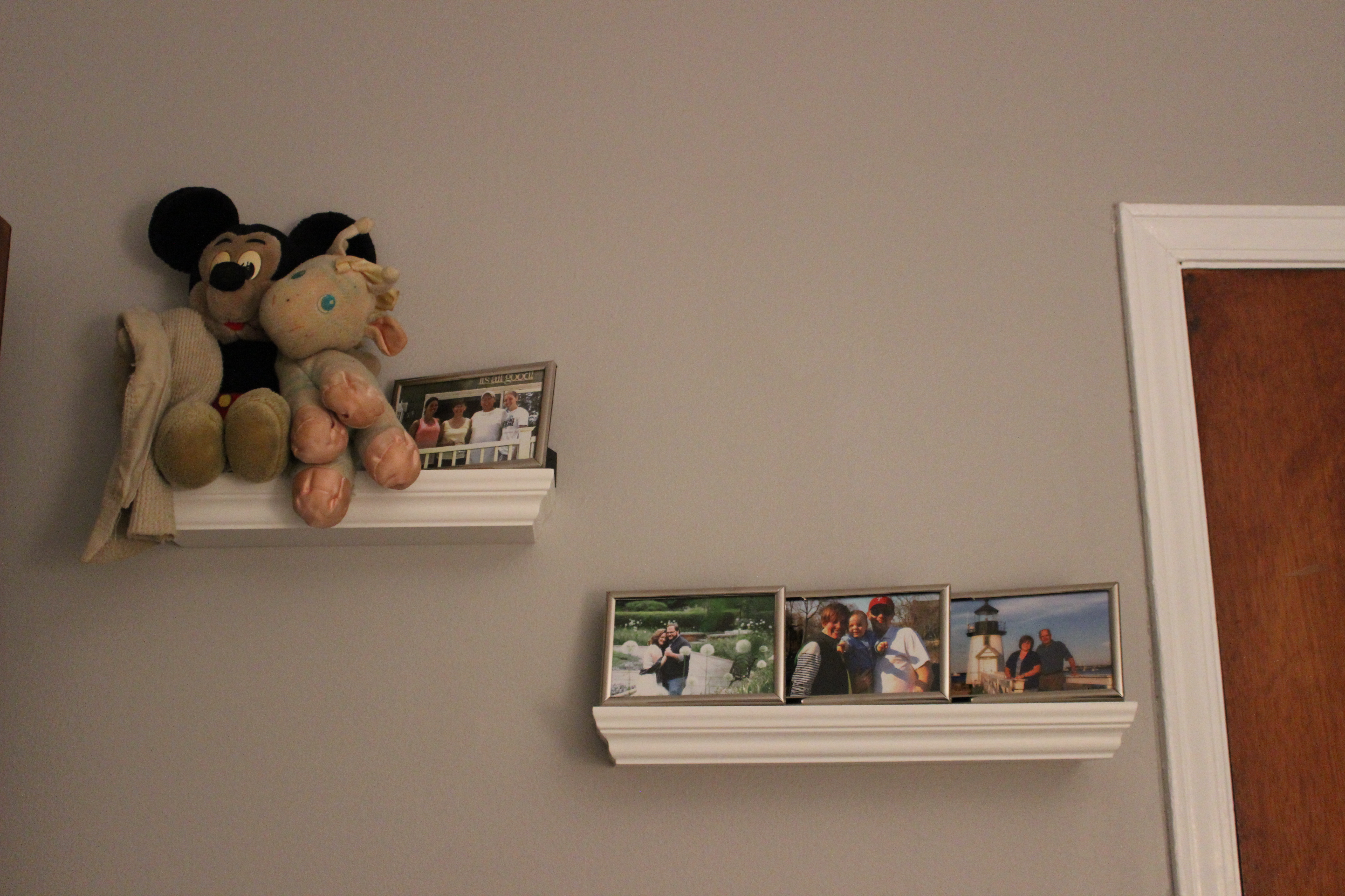 When we emptied the room, we had taken out a roman-looking shield i had randomly bought during a halloween sale a year ago and never found a home for. When the room was painted, I stared at one wall and said "something goes here". My husband immediately returned the shield to the space and it was perfect.