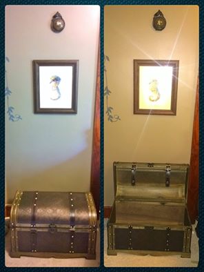 I really wanted a place for toys, especially since they'll undoubtedly clash with the decor. An "authentic" looking treasure chest was the perfect solution. This reinforced chest is designed to hold over 100lbs on top (and i have stood on it) and we're adding some bumpers to keep the lids from pinching tiny fingers