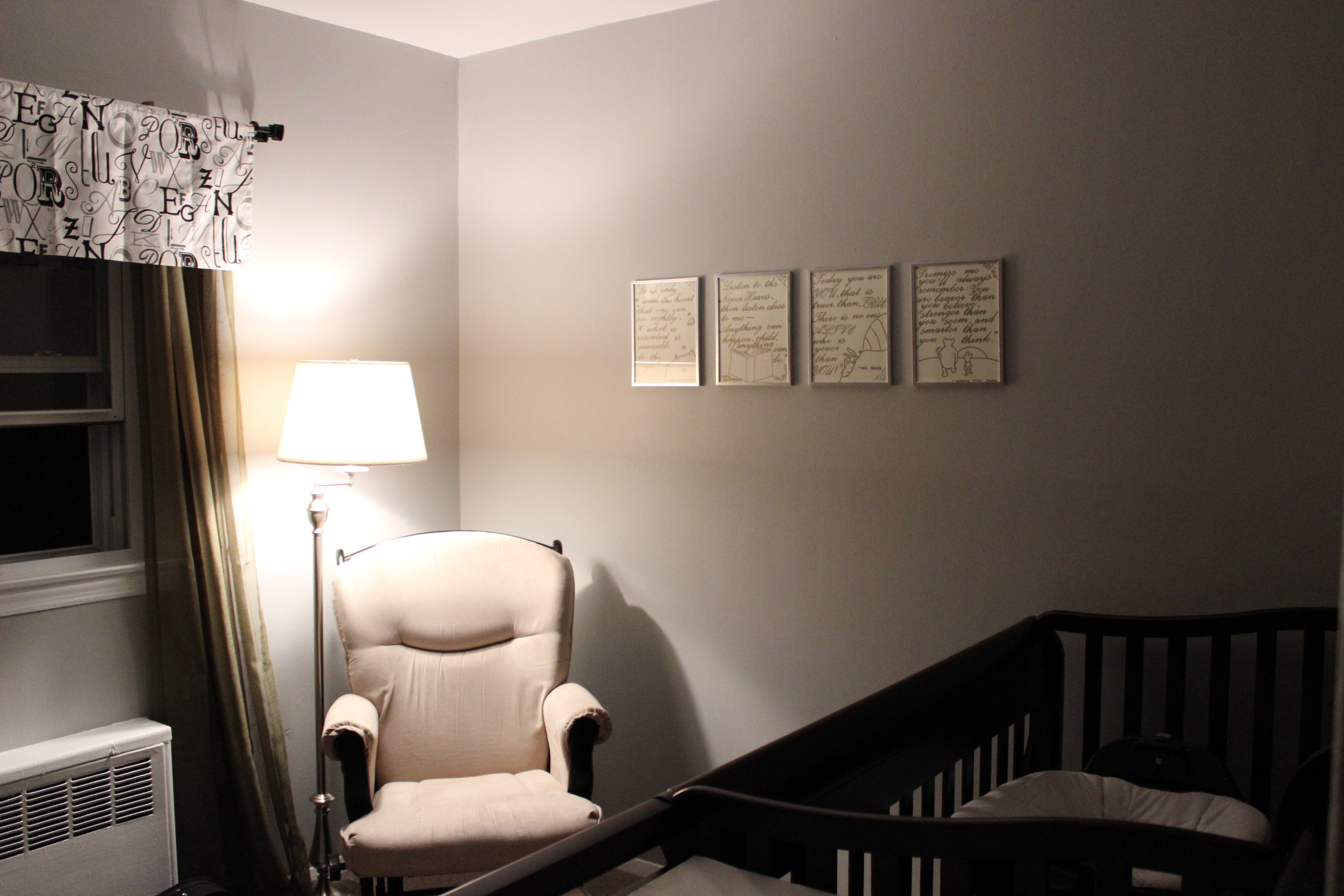 Wow. That is so great that so many of you have started a nursery! I've been really frustrated about this...My husband seems to think staying in our tiny one bedroom is a grand idea. There may be just enough room to put a mini crib in our room and that's about it. Trying to convince him how much happier we will be if we have a little more space but he thinks I'm crazy and wants to wait a couple years to move. I'm a little sad about it because I was really looking forward to making a nursery. Hoping he will change his mind soon since our lease is up in two months. Meanwhile, I have been spending a ton of time on Pinterest researching small spaces and babies! Any tips are greatly appreciated.