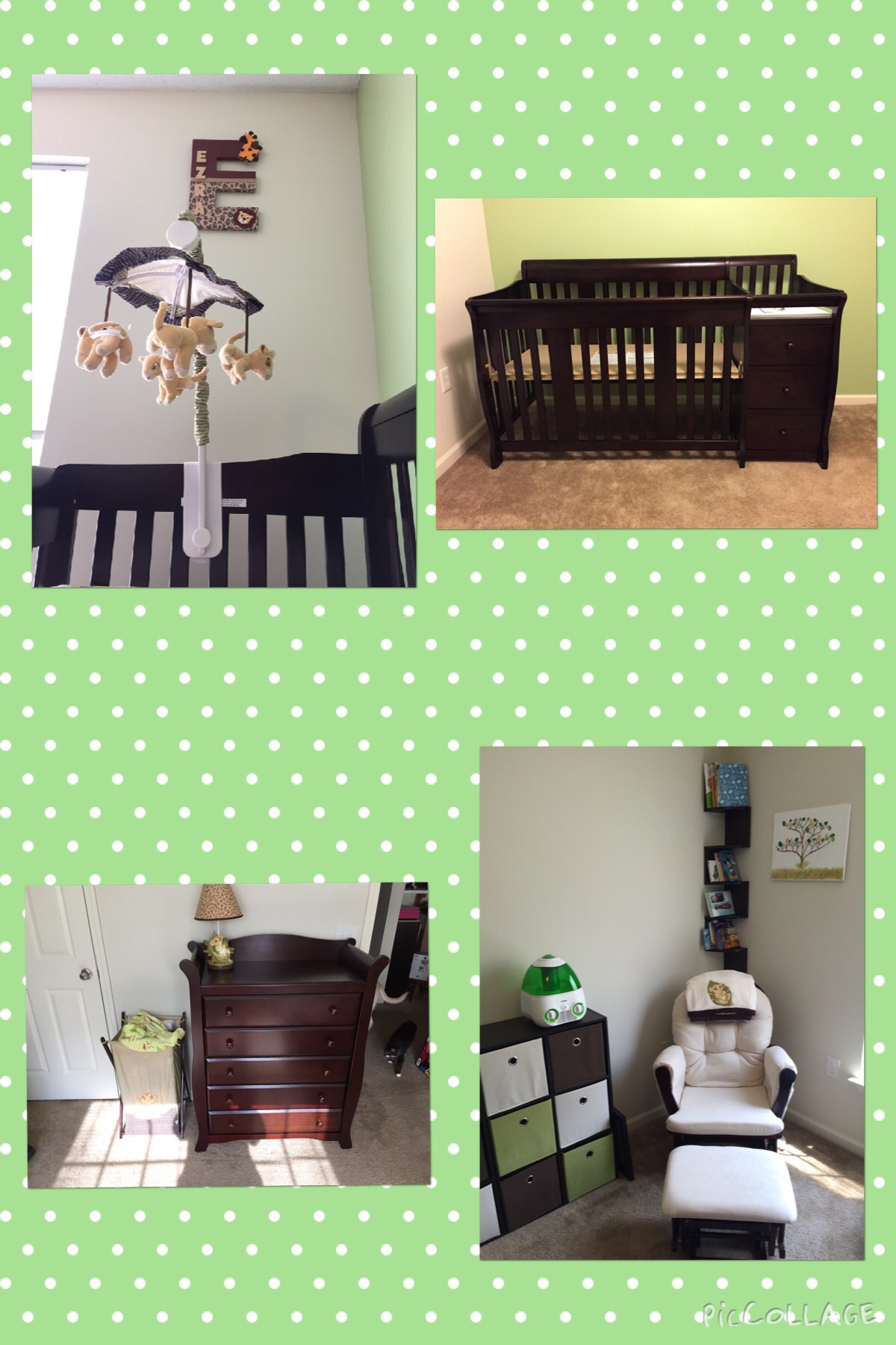 I knew i wanted brown whether it was a boy or girl and the nursery got painted early. Then the decals- it would have beencherry blossomsfor a girl, but i went withjungle vinesfor our little man. (here's a similar one i also like)