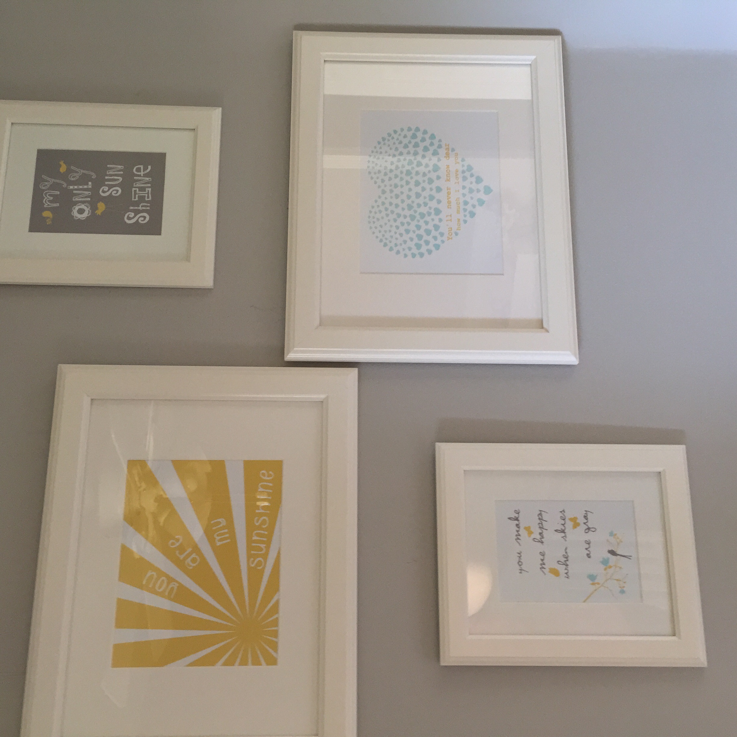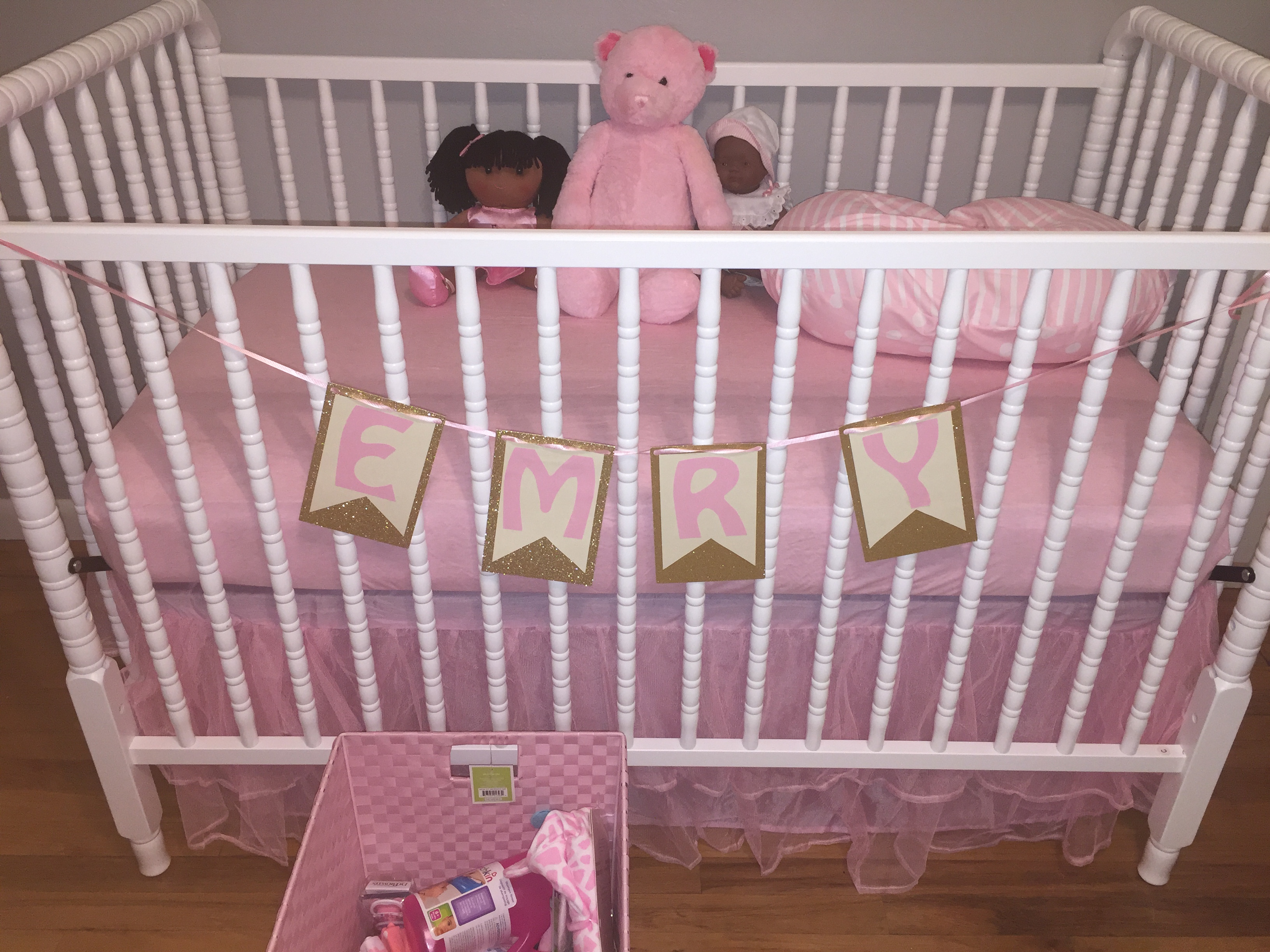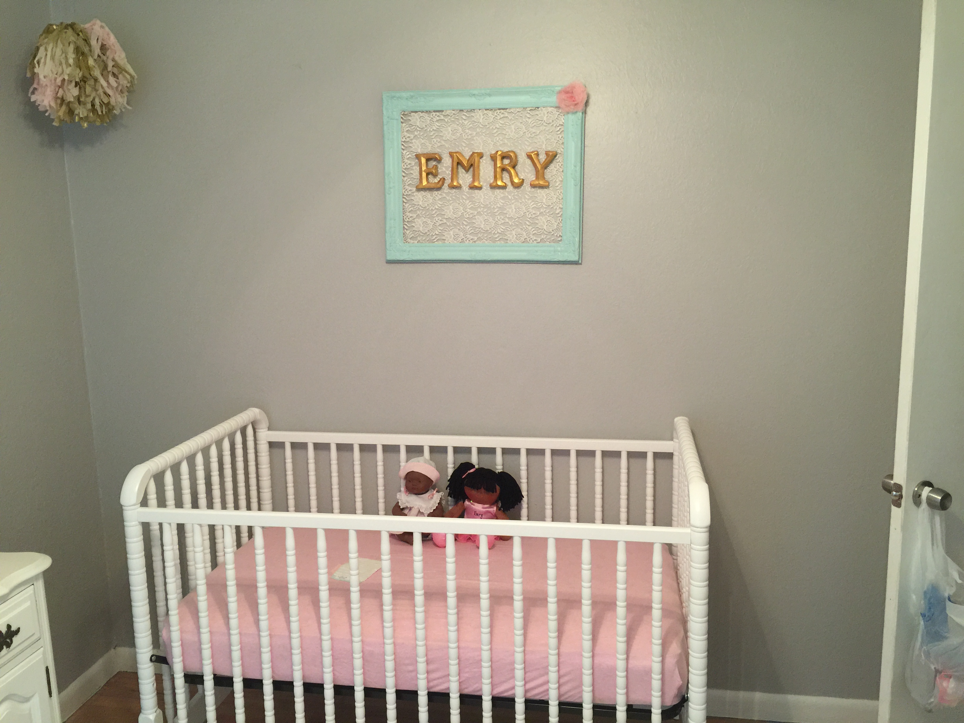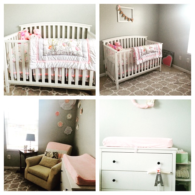 I finally feel like I'm making progress on the nursery. All that's left is the gallery wall above the dresser and some pictures on some of the smaller walls. Plus, we won't move the glider we have out of DD#1's room and into this room until this one starts sleeping in her crib.