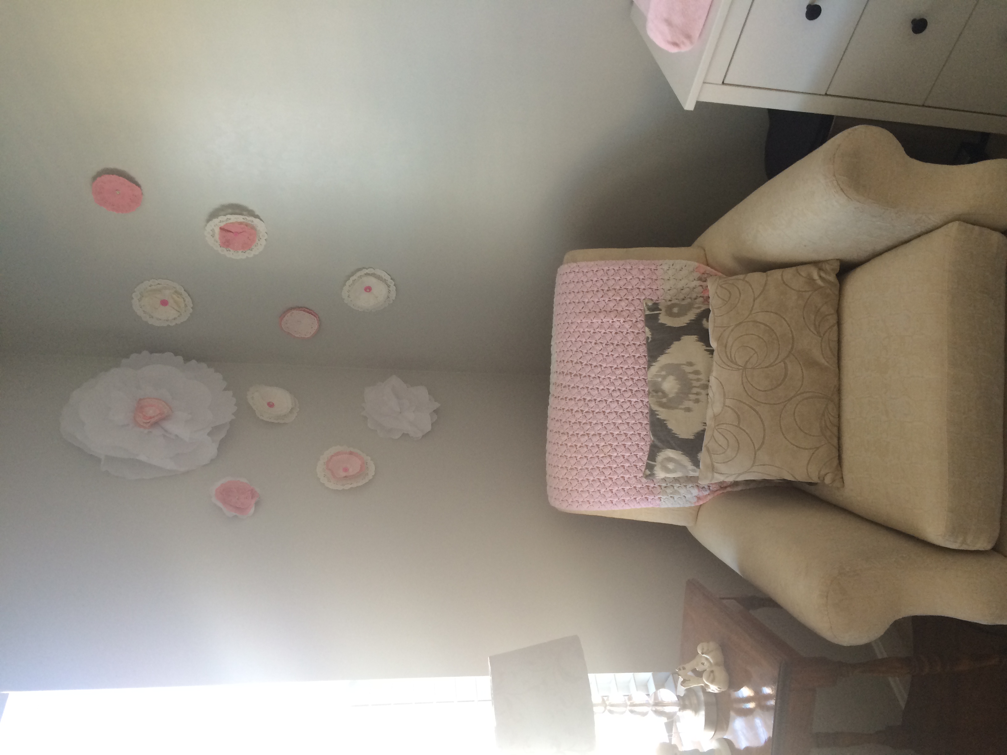 Baby is already 12 days old and her nursery is finally complete (crib is on page 6) Lol. That's what happens when your baby arrives almost a month early. My favorite part is the memory balloon ceiling light, in memory of my nephew.