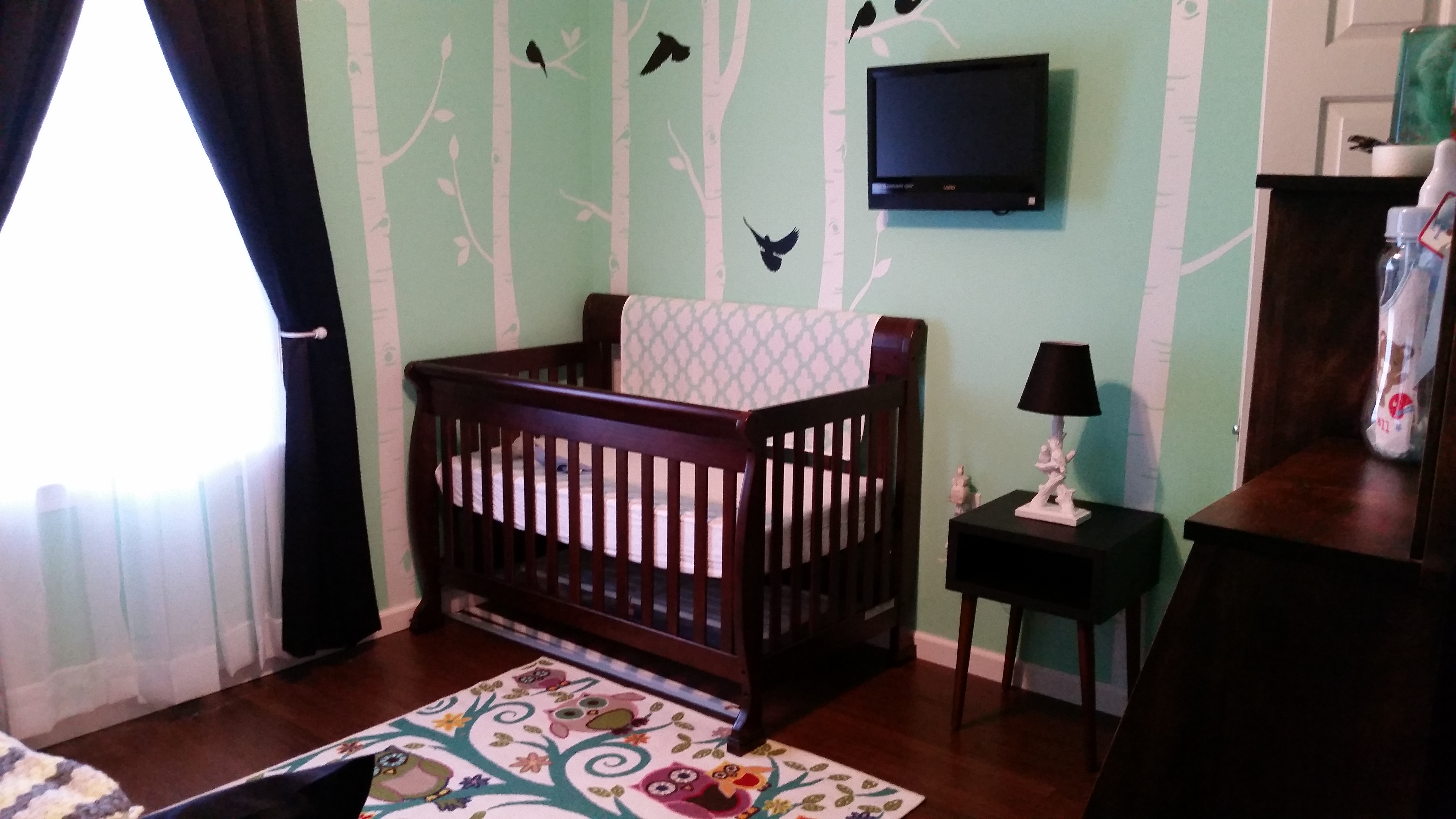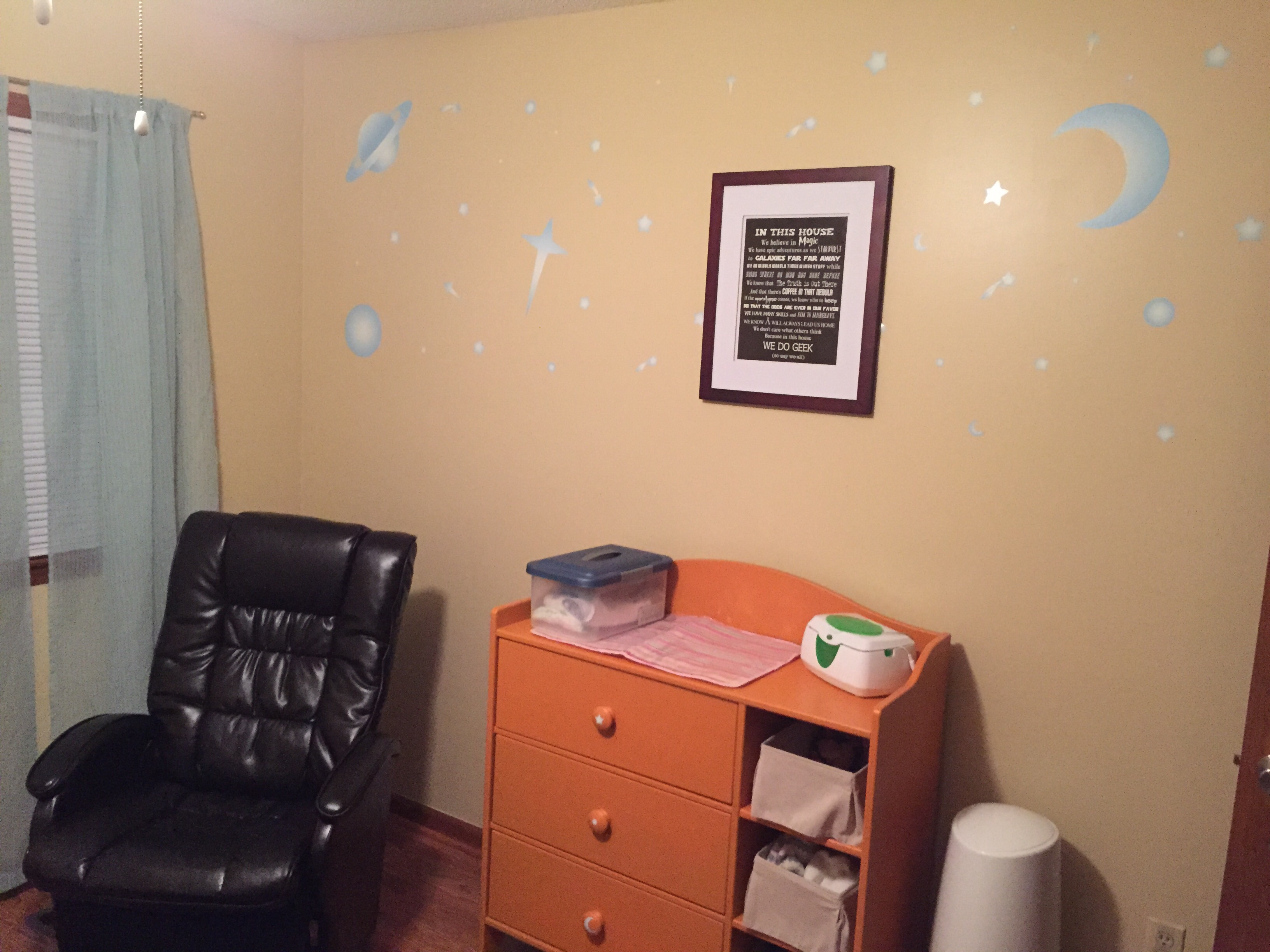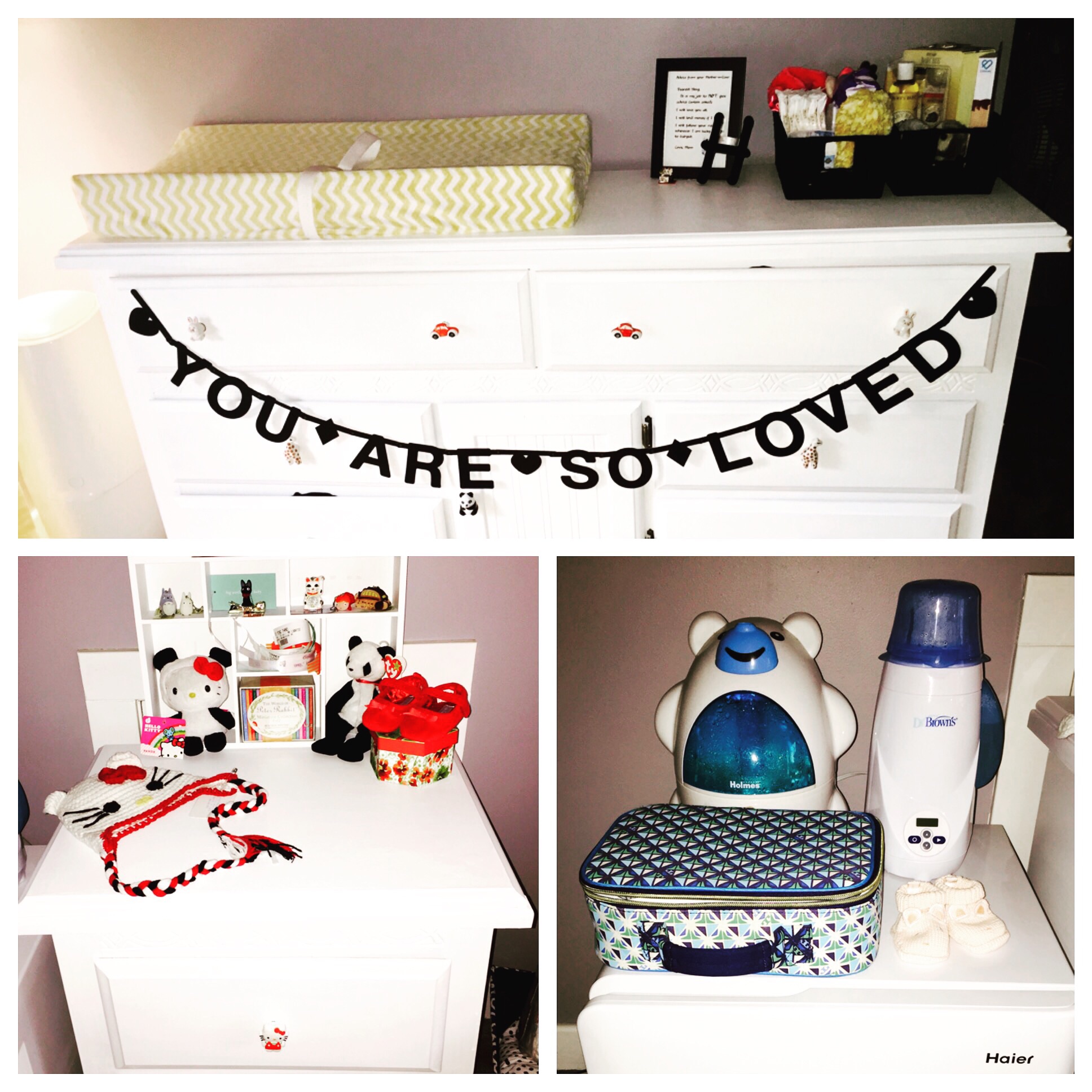 Still working on a few details but most of the big stuff is done. I will take the bassinet out and have that in my room for the first month or so. Also, the aluminum foil is to keep my crazy cat away!