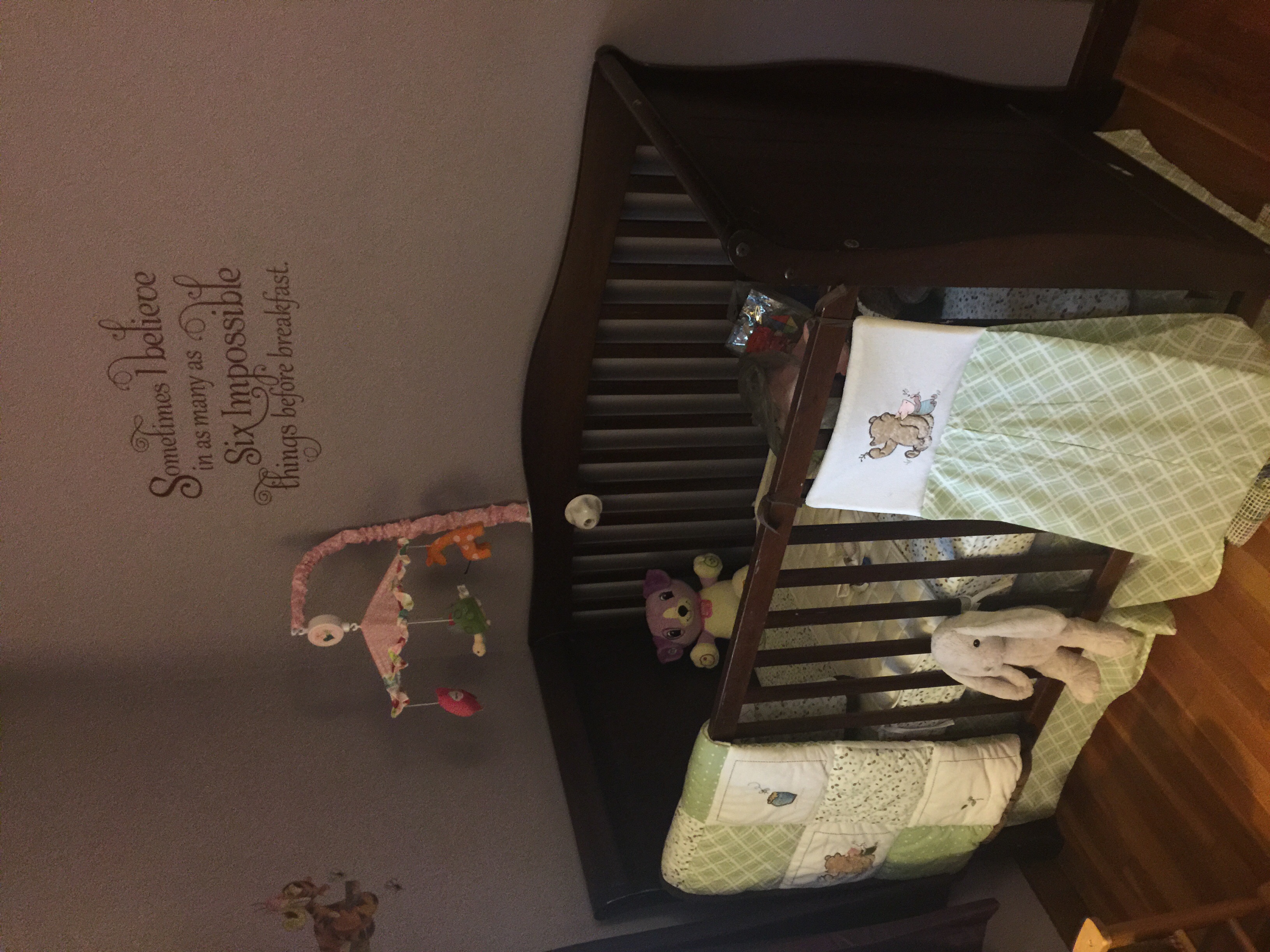 Only have the crib set up.. Still need to finish organizing and decorating. A friend of mine who is like Martha Stewart, made me some cute decor for my shower and gave them to me to use. Will post those later once on the wall! Here's just a pic of the crib.