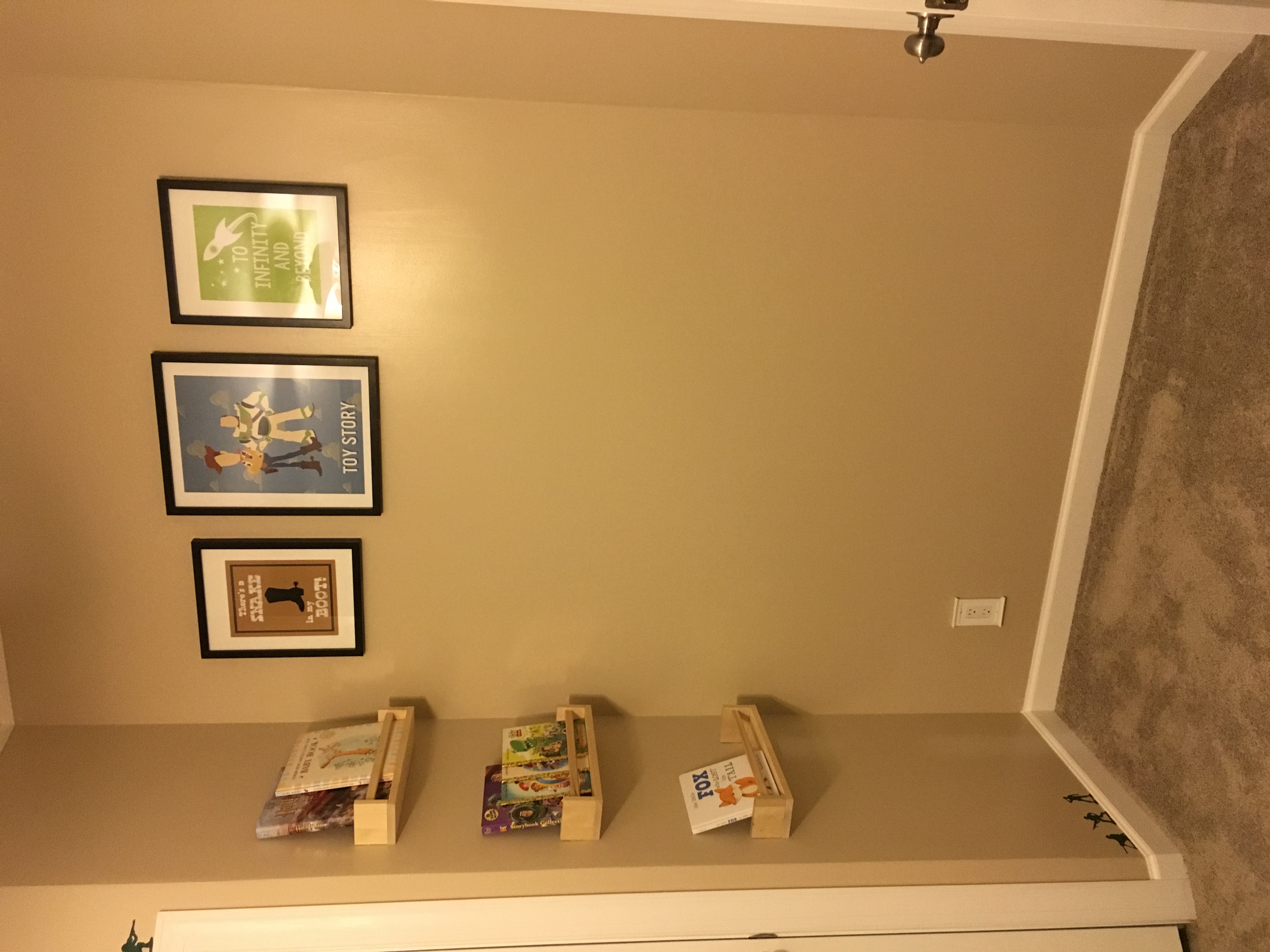 The bulk of the nursery is done. Just a few more things to hang and curtains to put up. Still need to install the book shelves and pick our rocking chair up from my in-laws.