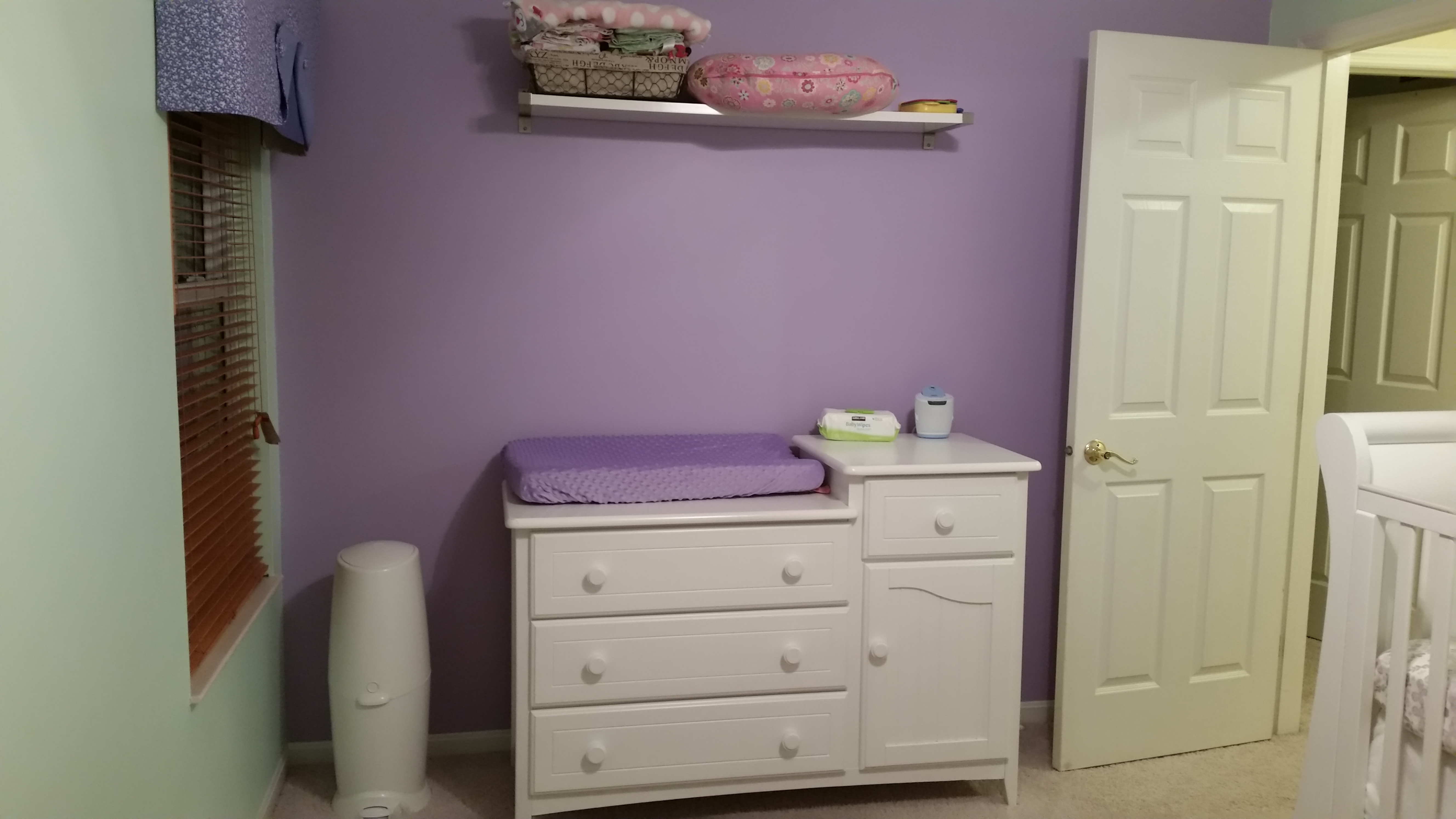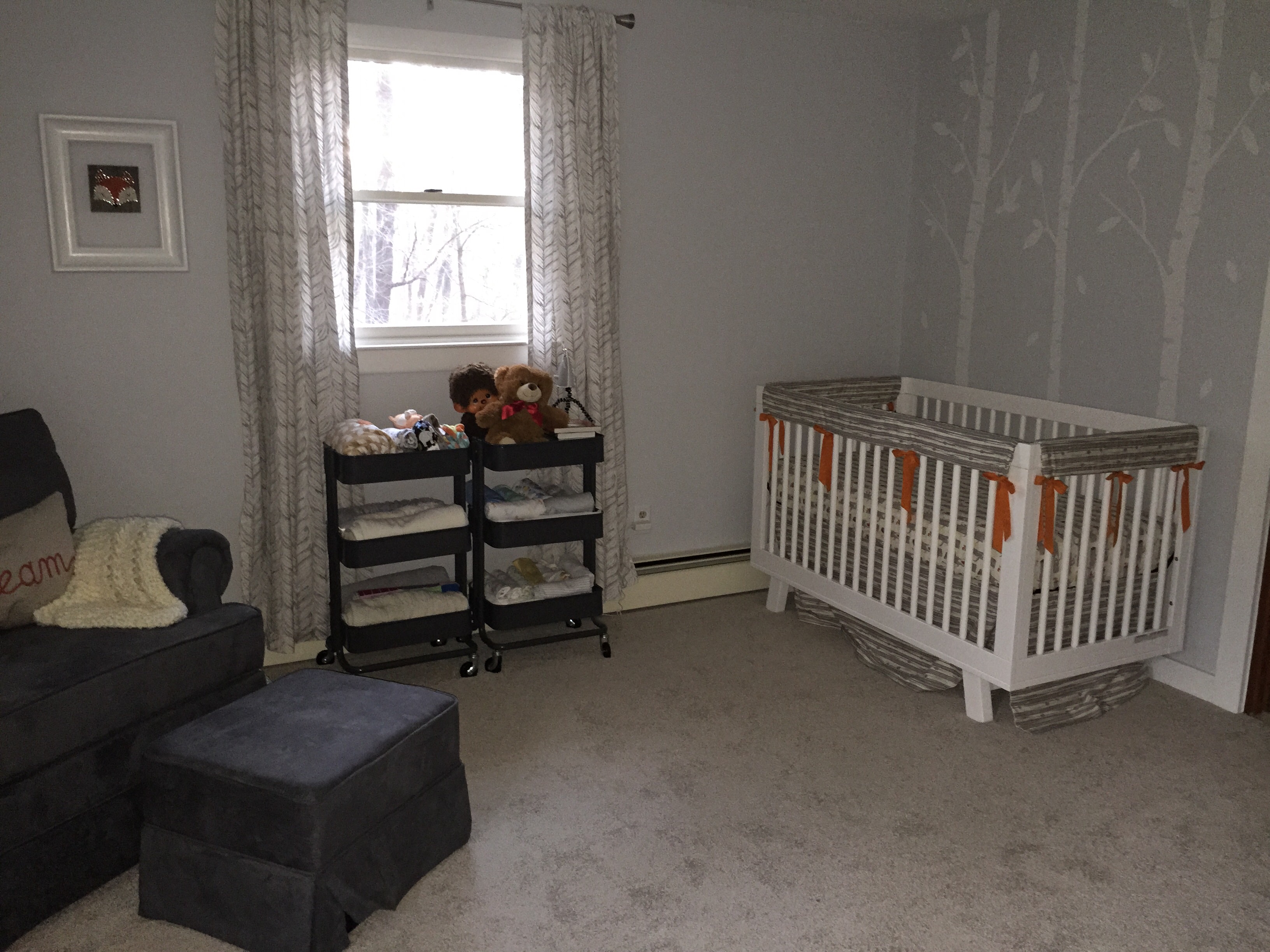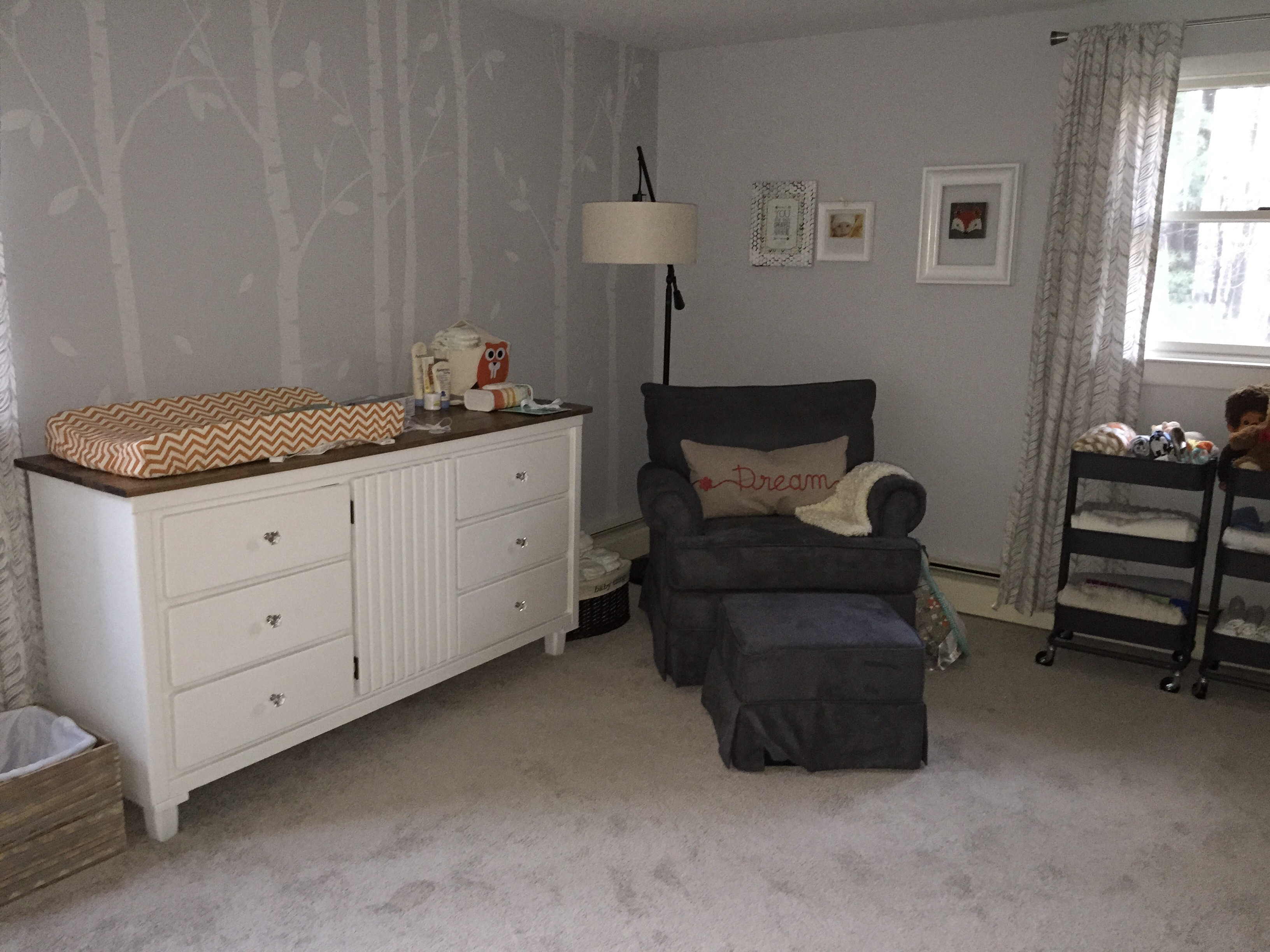 So many good ideas in this thread and so many beautiful nurseries! I finally get to participate. We moved in June had had to get the downstairs furnished before moving on to the nursery but made some great progress last weekend. Everything is pretty much done except wall decore, curtains, and the crib (DS is 2 and is in a big boy bed but pedi recommended waiting until baby gets here to put the crib back up).