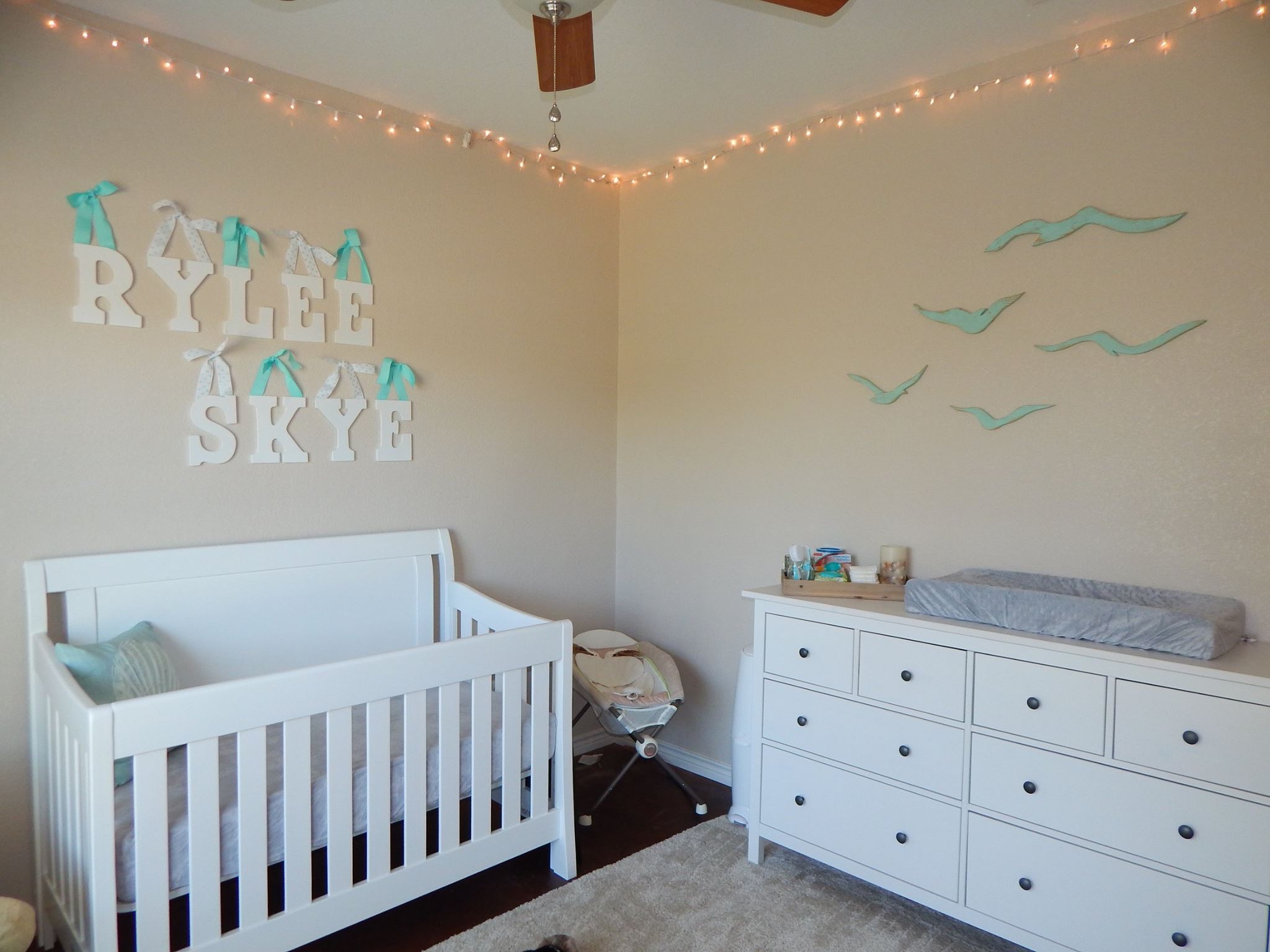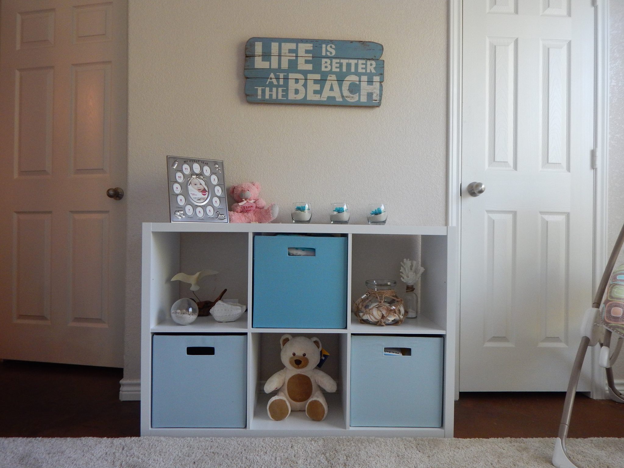 I did a coastal theme, beachy but not nautical. Something she can grow into and not too "baby-ish". Will have to move some of the decor up onto shelves as she gets older but for now I think it's pretty cute.