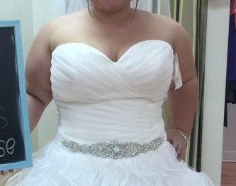 So, my boobs changed my big day. I went and bought my wedding dress back in January. I was thrilled with the fit considering it was strapless and I had DDs. So, I get pregnant in April. I try in my dress 4 DAYS before my wedding and everything is fine. Then, on my wedding day (this past June, I was 10 weeks) my dress no longer fit. I seriously looked like I got 3 cup sizes bigger and my family didn't know I was pregnant! I am really conservative in how I dress, so imagine there amazement on my big day. I can laugh now, but I cried the day of for a good 10 minutes. Husband LOVED IT! Hahahaha. His mom not so much.