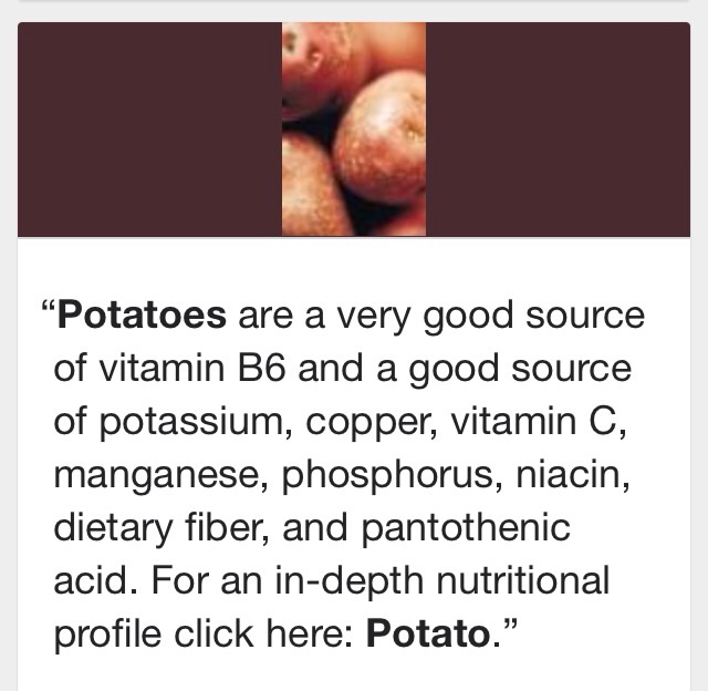 My sis is a dietician and when I tell her I binged on baked potatoes or French fries she sends me things like this