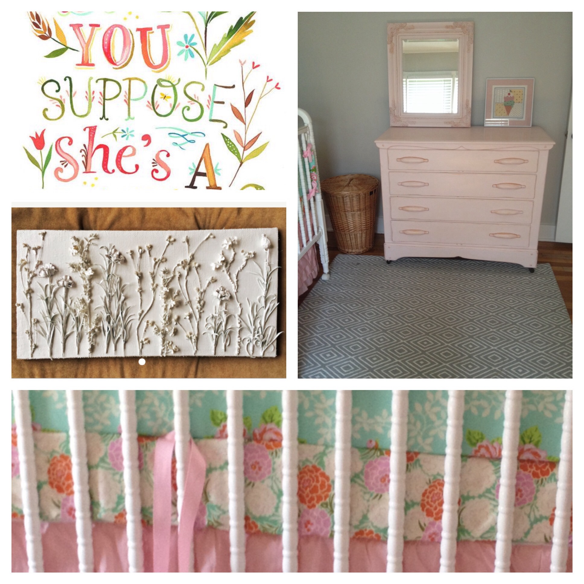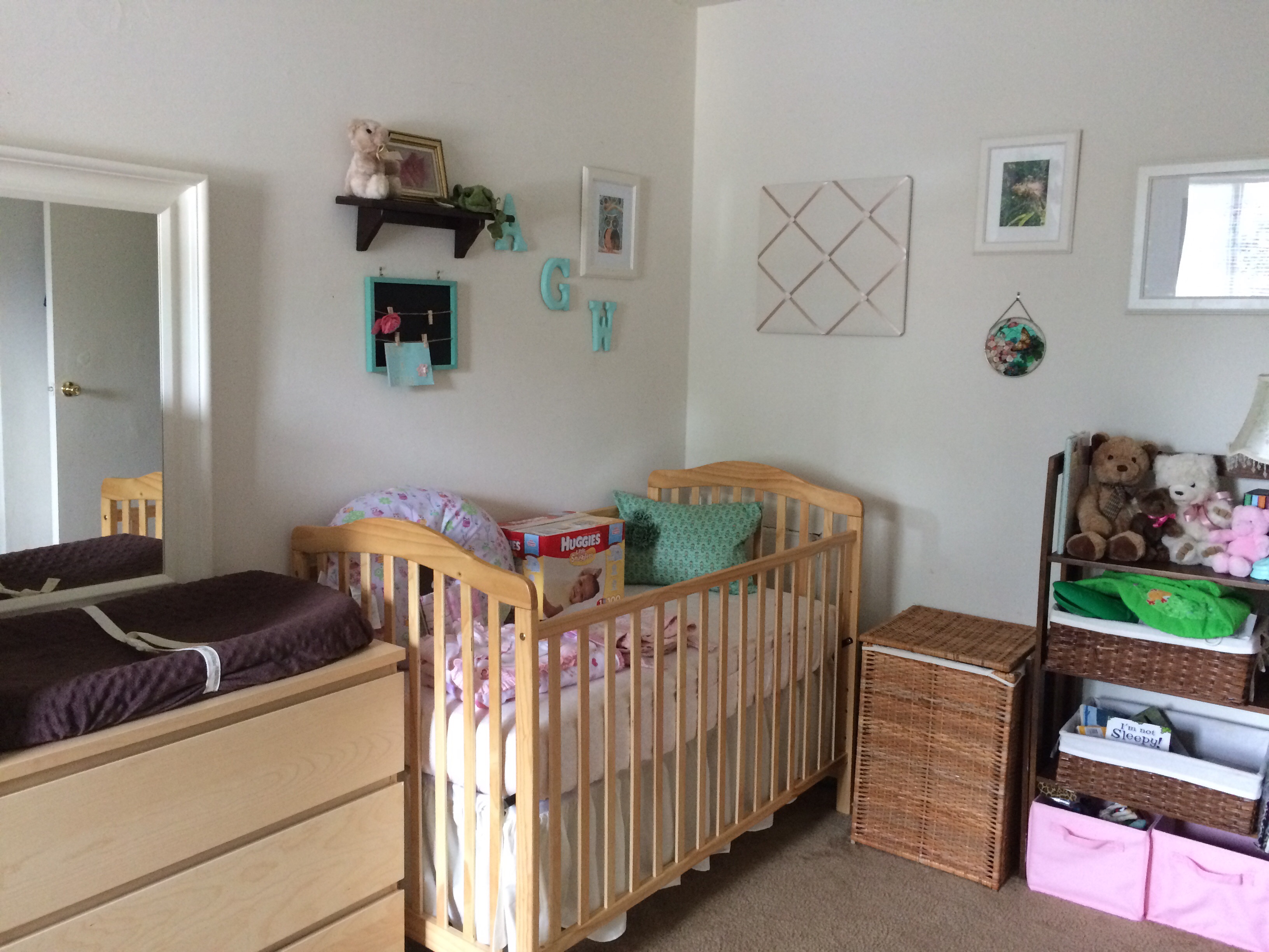 We still have a few touches to add above her crib including a painting a friend is doing and a name thing that's TBD. Almost done!