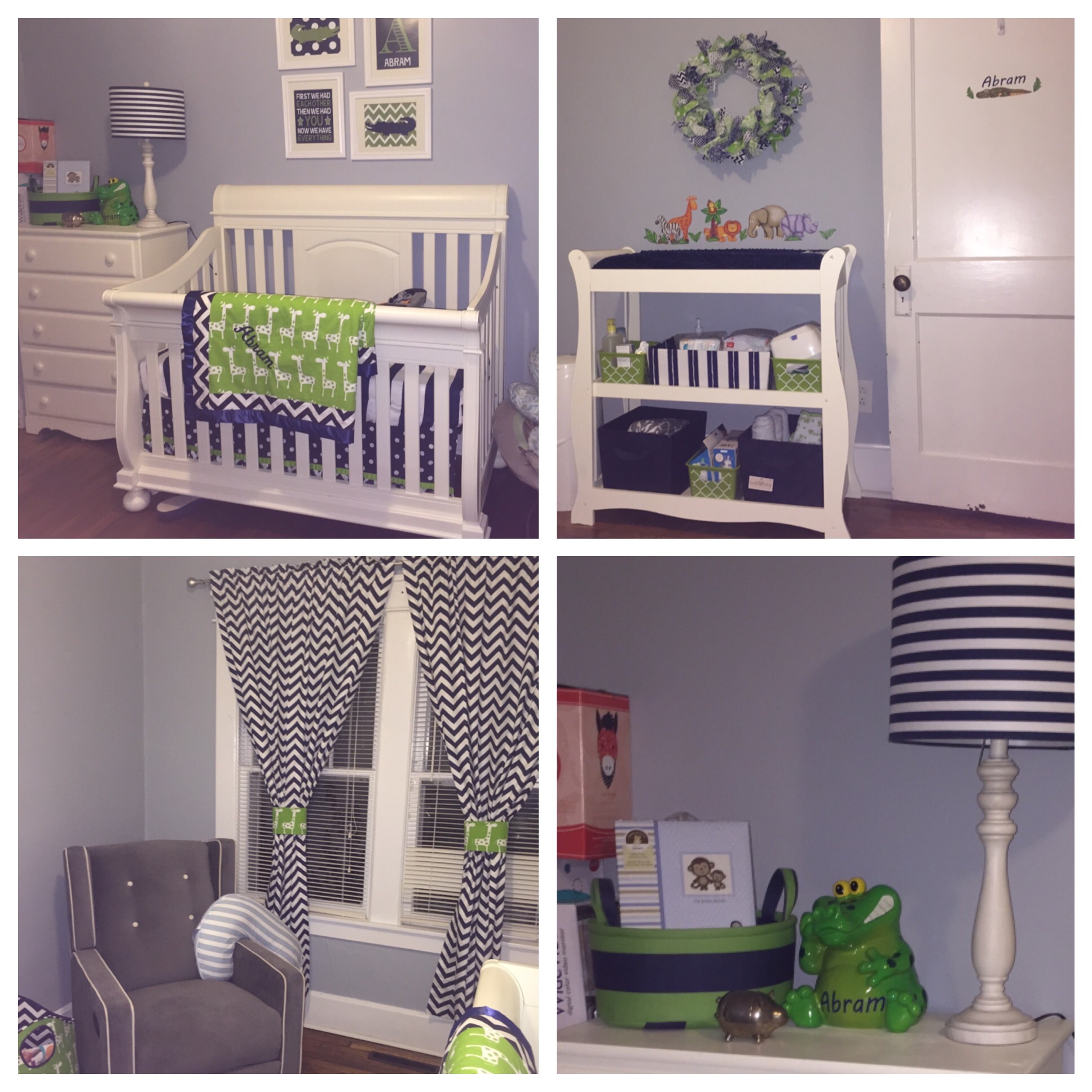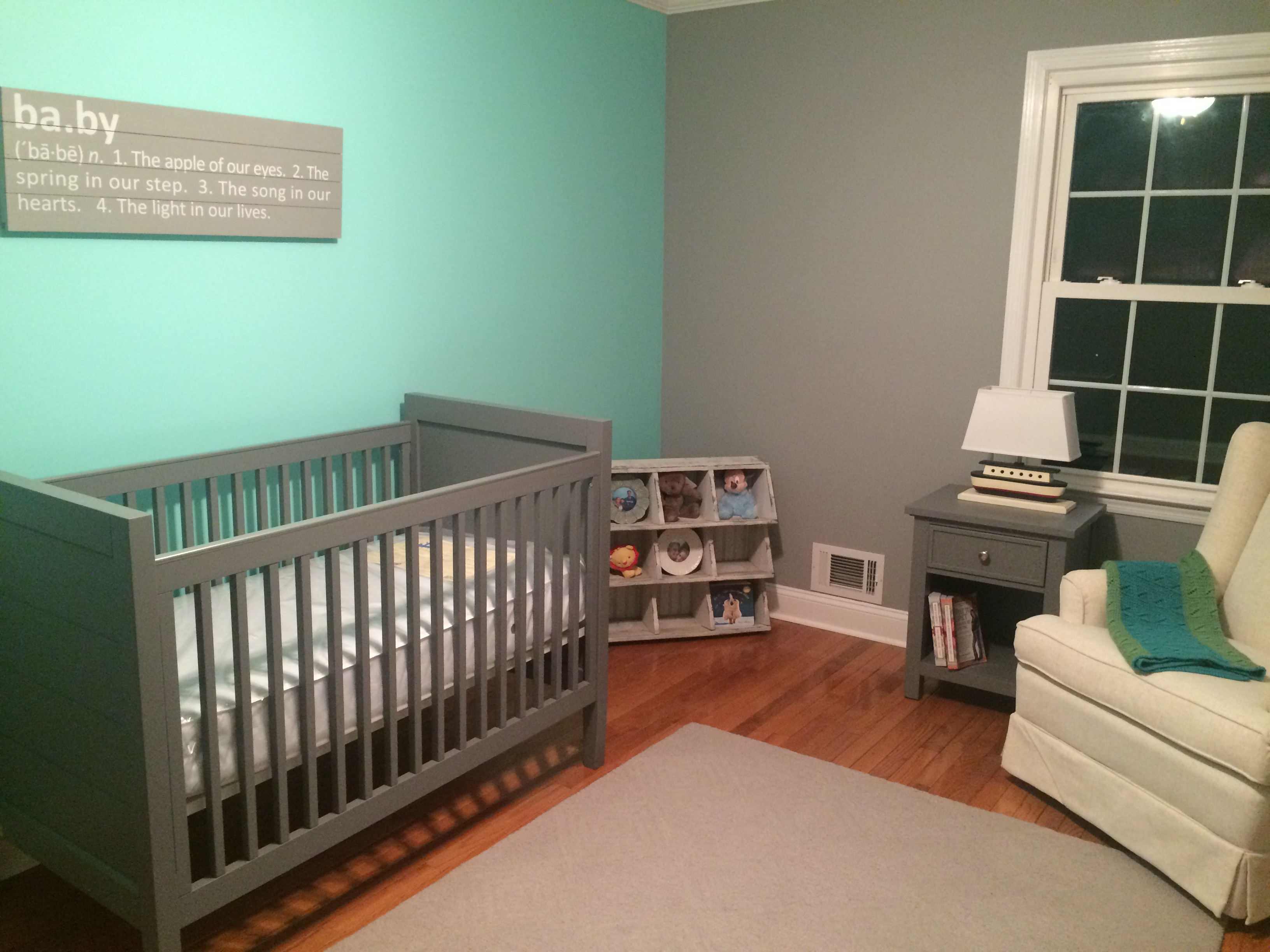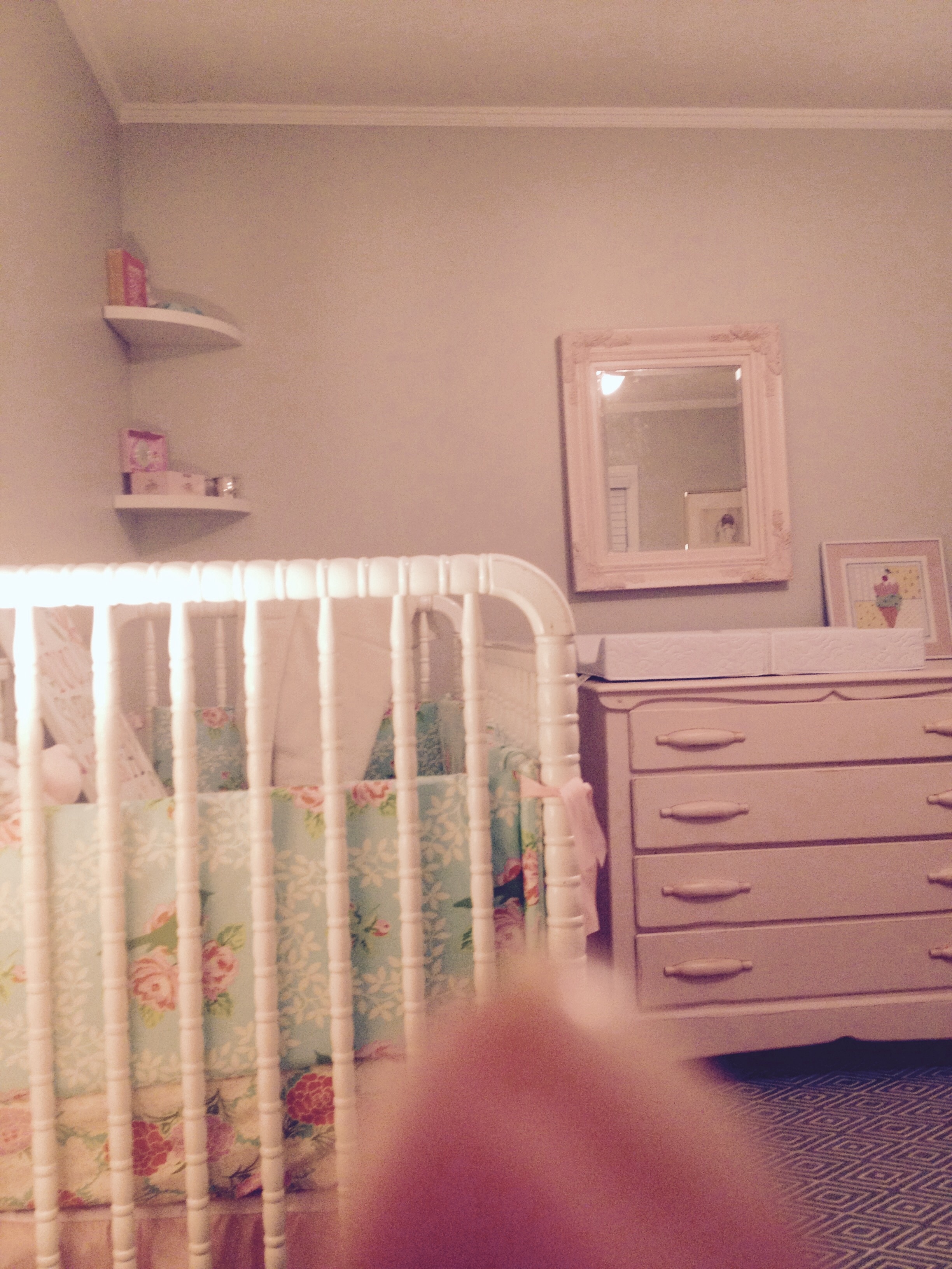 I finished up most of my nursery this weekend and just wanted to show it off after looking at all these adorable nurseries the past couple months!! All of our wood furniture was hand me downs that we painted to match one another, my mother in law made the bedding and curtains, and we purchased the glider. I still have a few things left to do but am so excited with how it turned out!