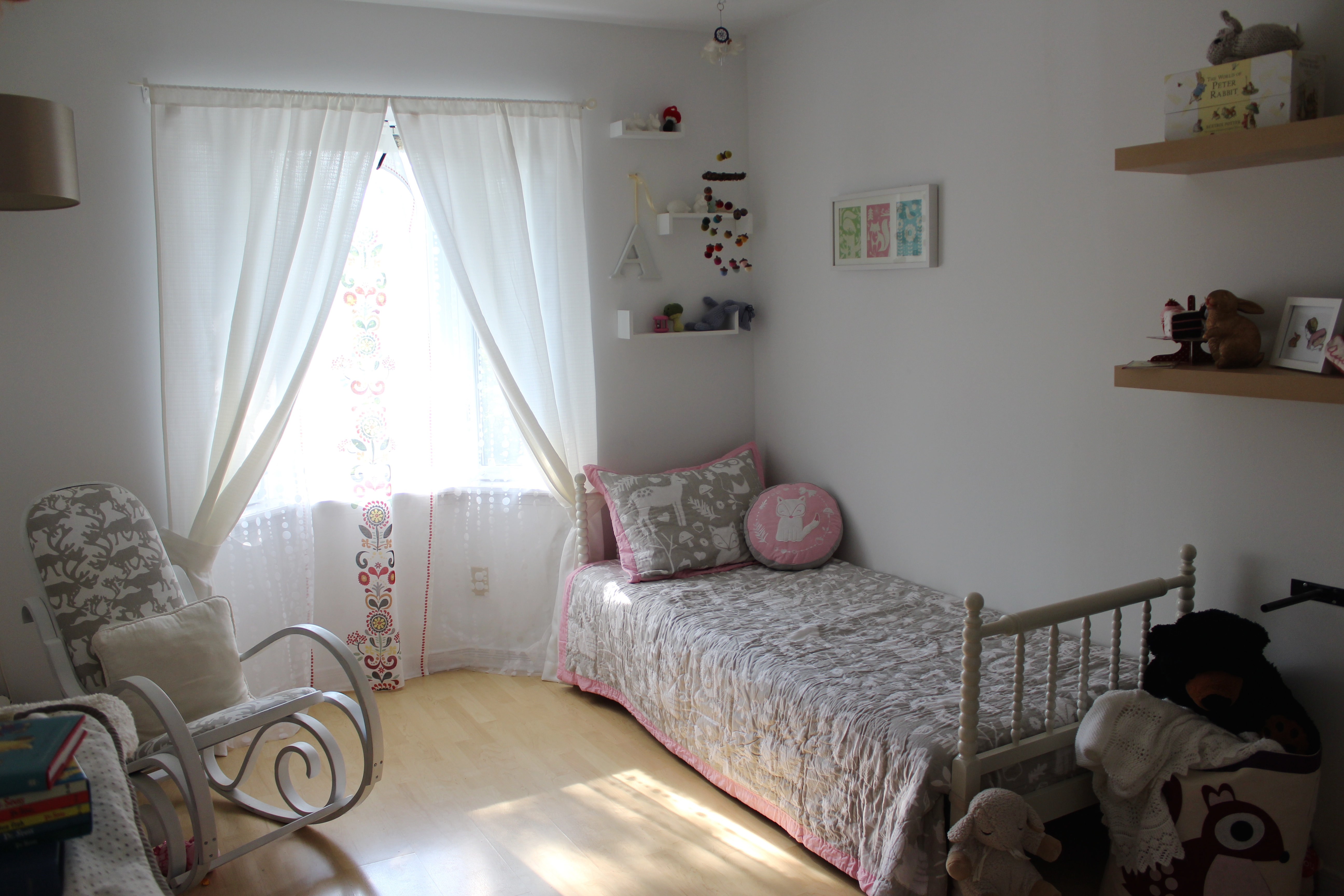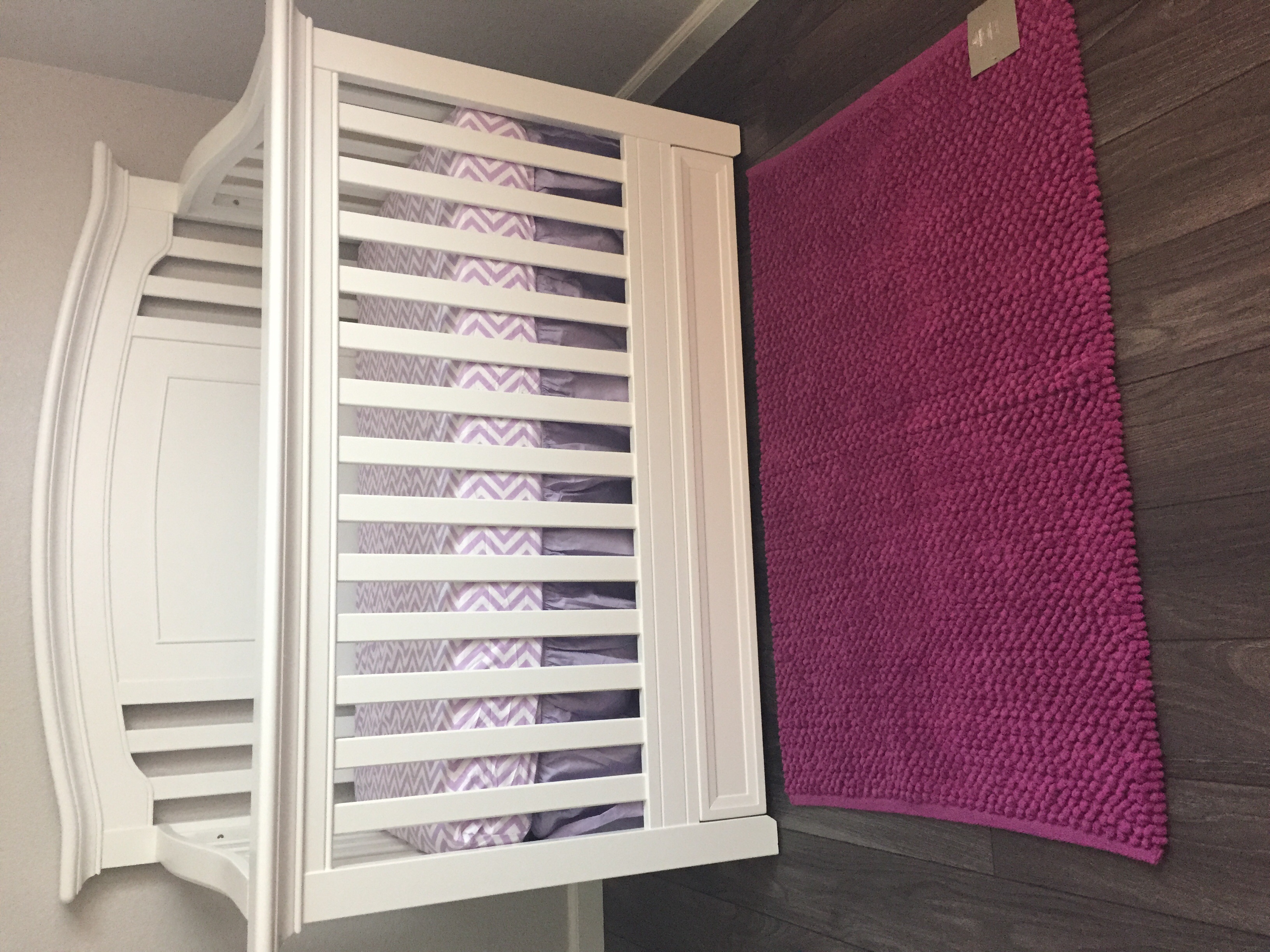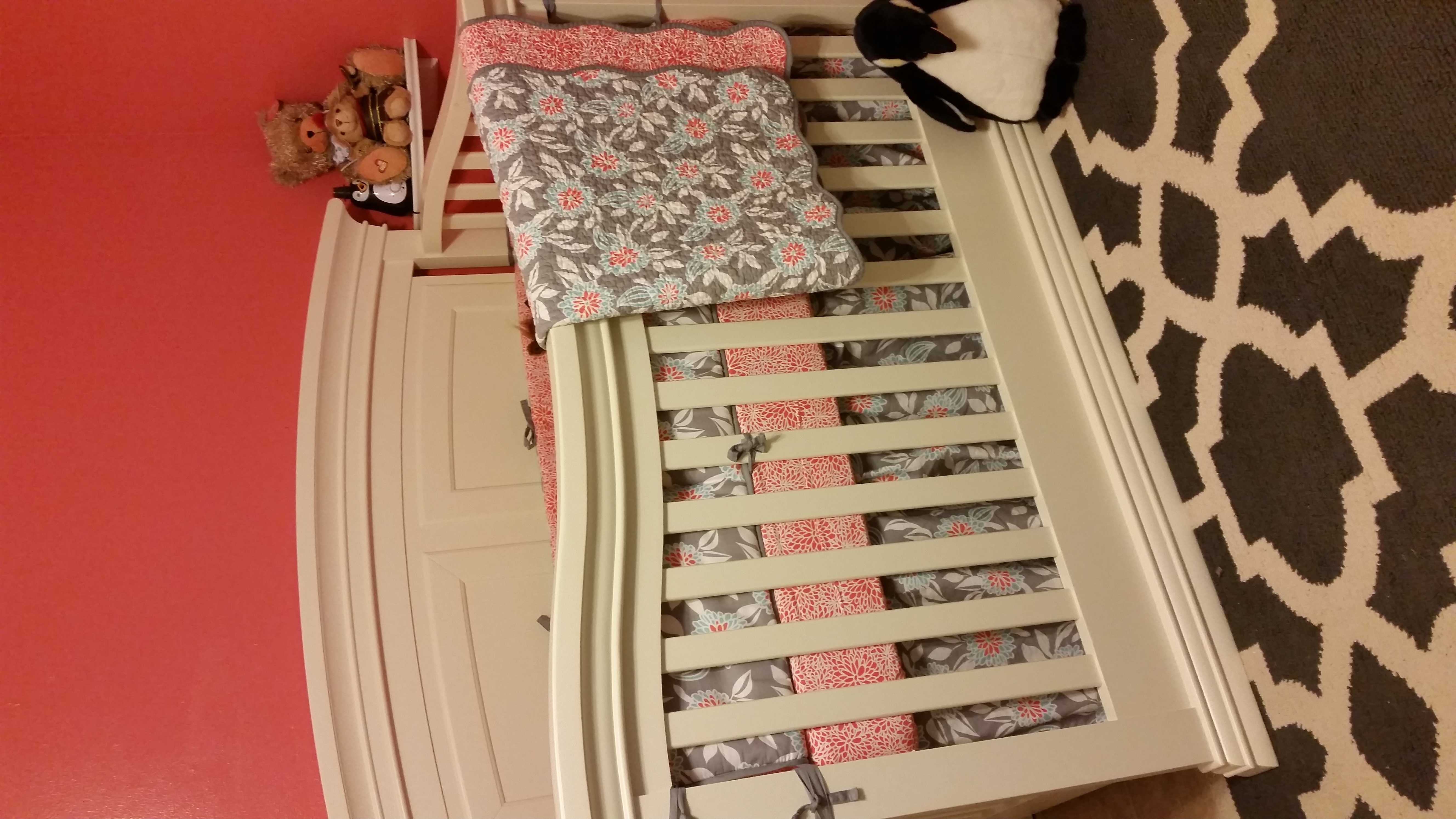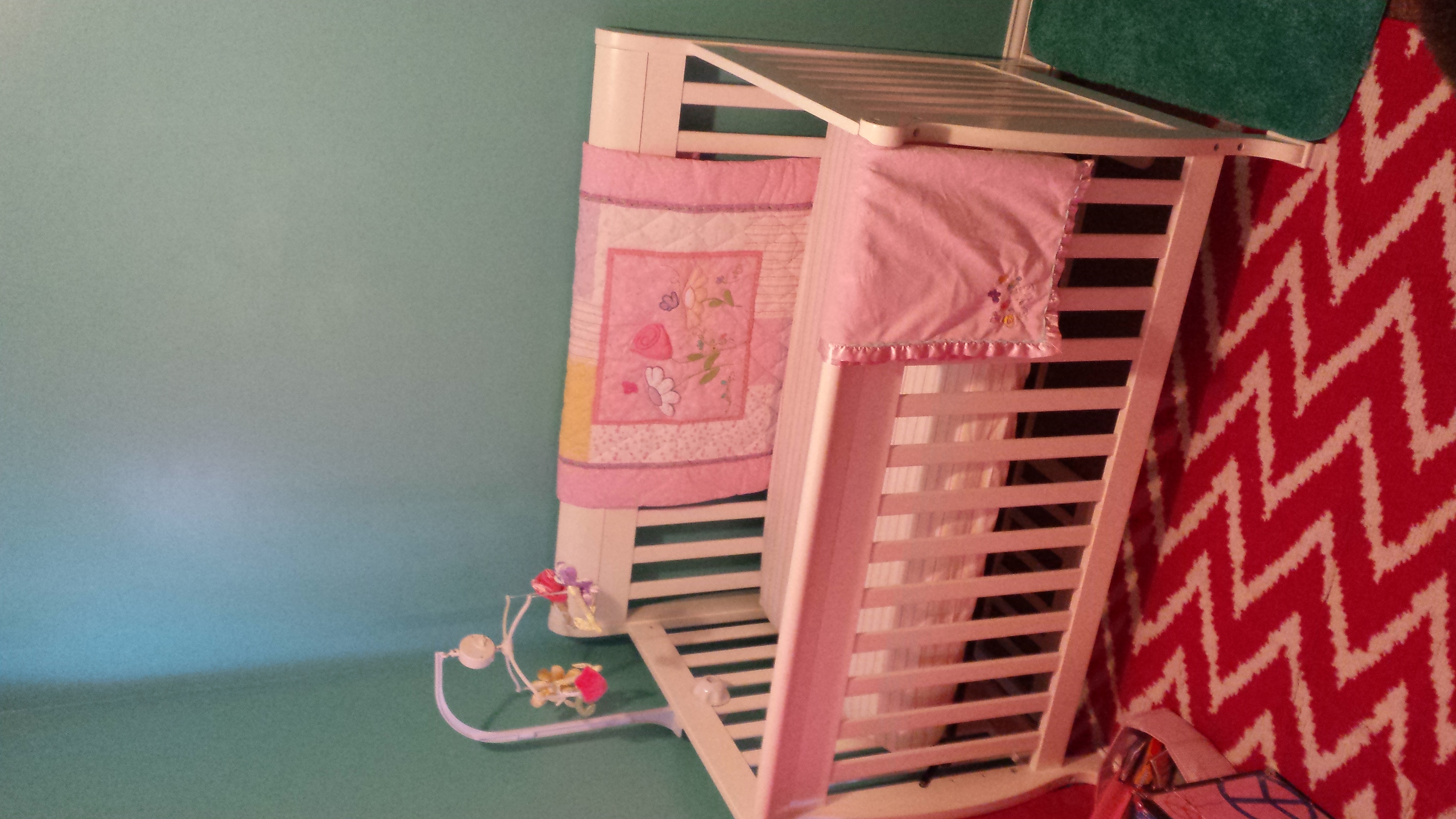 moved my almost 2 year old daughter out of her crib today and gave her her big girl bed. That's the update with our nursery! (they'll share when new baby is about 5 months old)