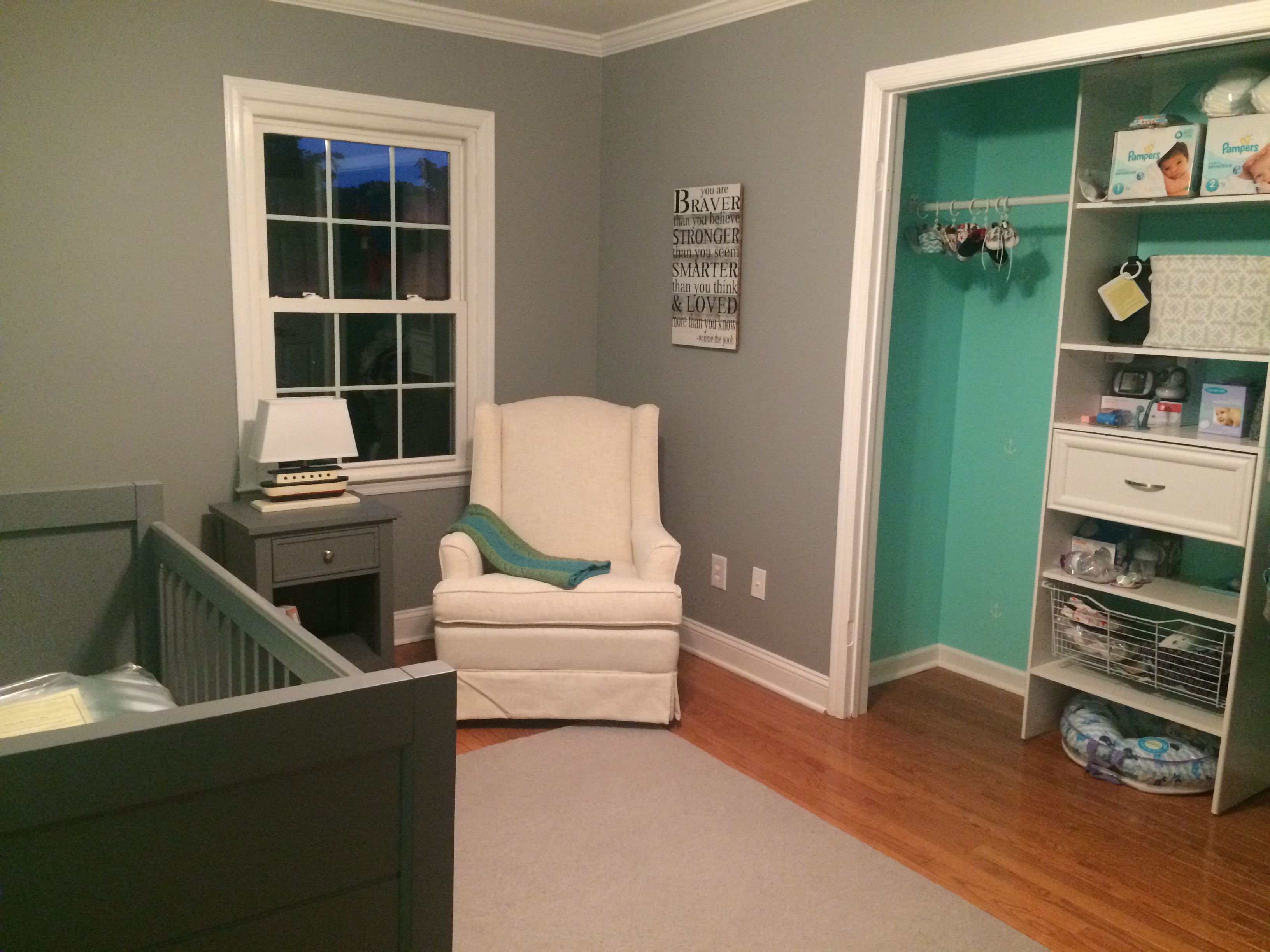 Waiting on the dresser to arrive, then will rearrange and hang some things! Also wanted to wait until after the baby shower to finish it up, which is on the 29th. Closet is done now just don't have a picture of it finished.